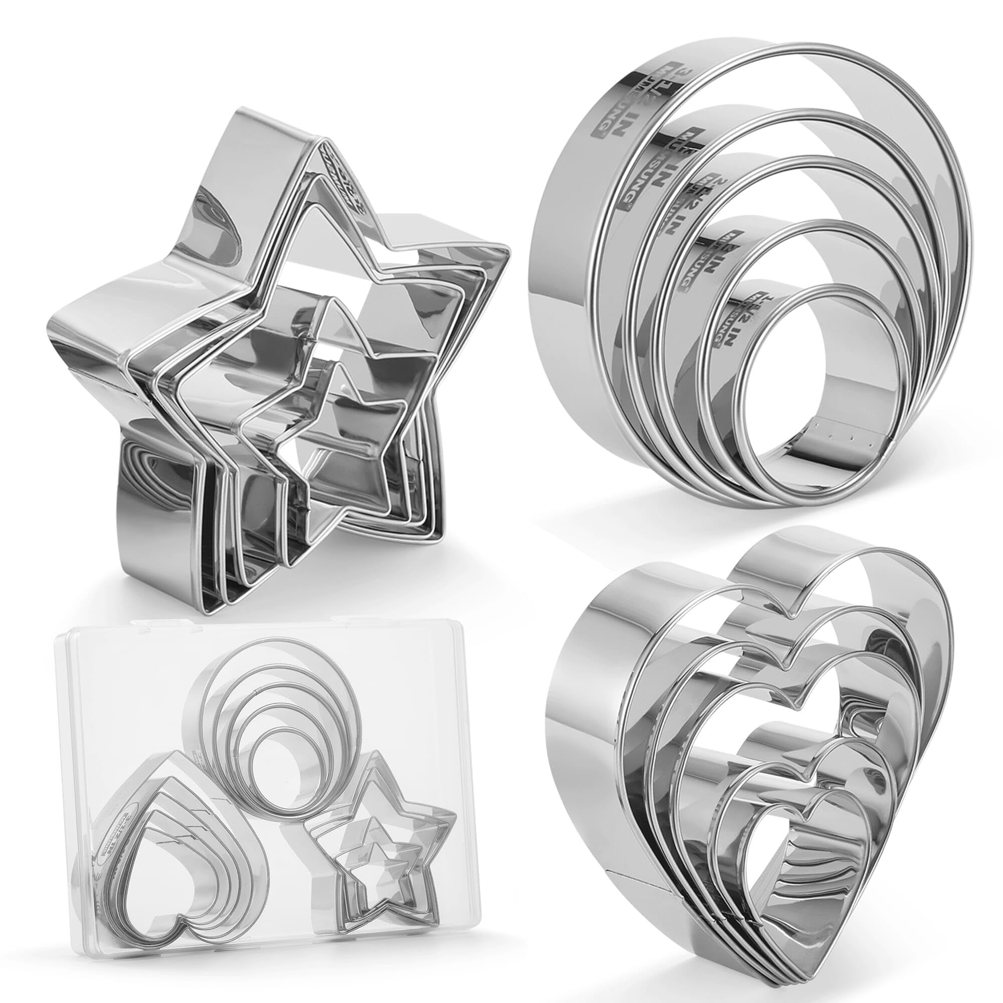Juego de 15 cortadores de galletas, cortador de galletas, cortador de galletas grande para hornear, cortador de masa de 3.5 a 1.5