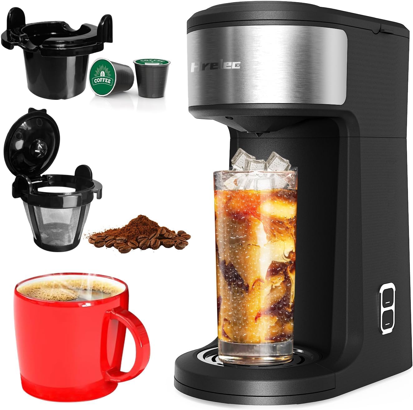 Cafetera de taza K 2 en 1, cafetera helada de una sola porción para cápsulas y café molido, cafetera en cápsulas de una taza de ca