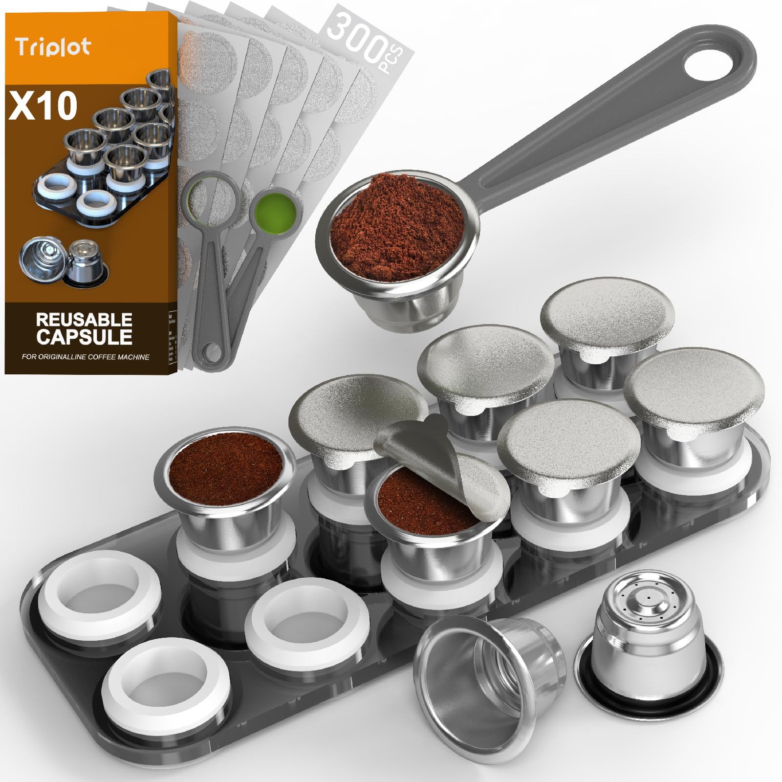 Trplot10 cápsulas de café reutilizables N*espresso OriginalLine compatibles con bandeja de almacenamiento, 10 cápsulas con 300 tap
