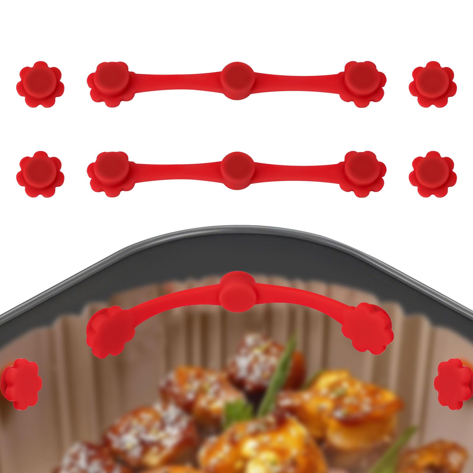 BOXOB 2 Sets Air Fryer Magnet Silicone Buckle, Air Fryer Liner Magnets for Holding Parchment Paper Flower Shapes Magnetic Holders
