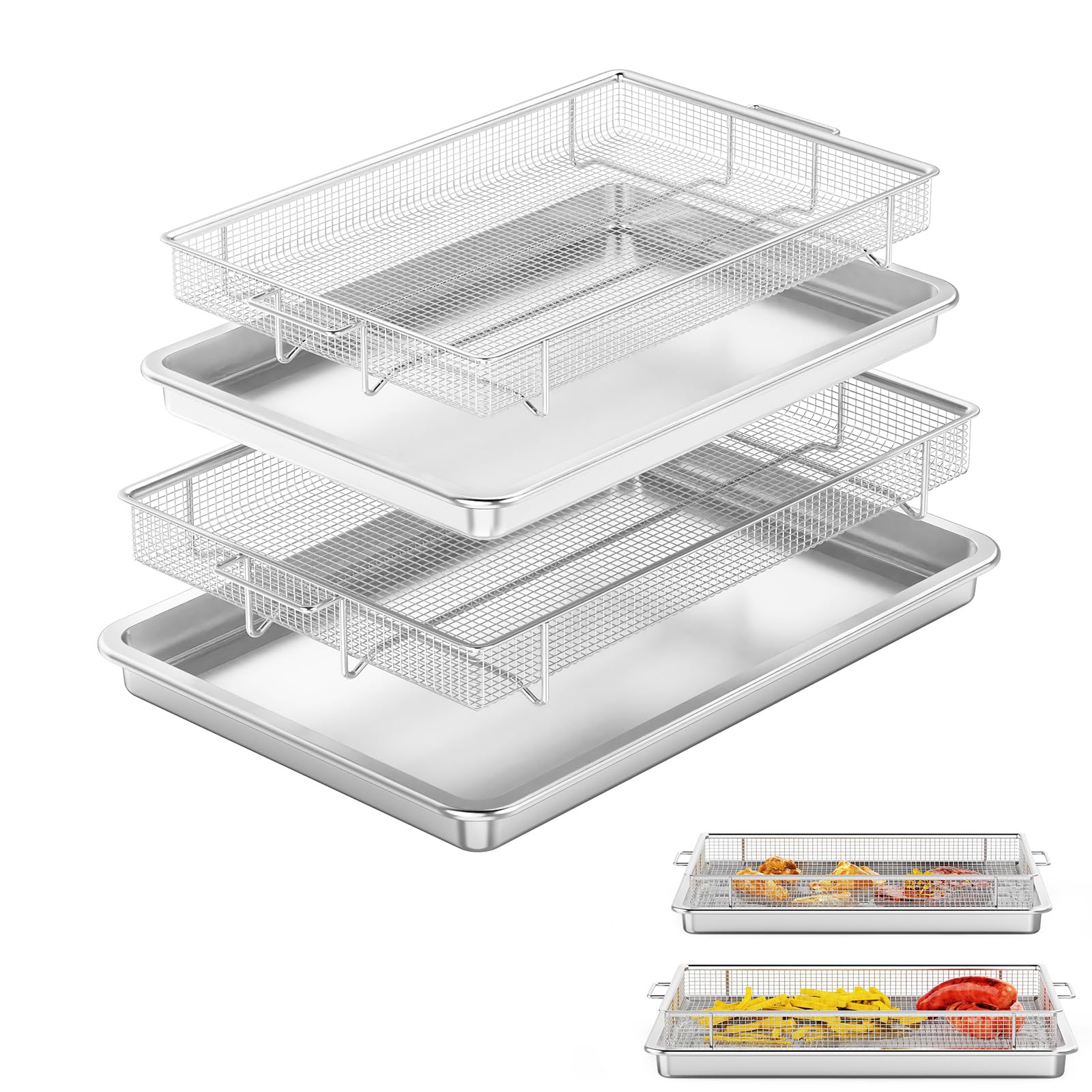 Abiglifty Air Fryer Basket for Oven, 2pcs Stainless Steel Air Fryer Basket and Tray with 60 Sheet Parchment Papers, Non-Stick Air
