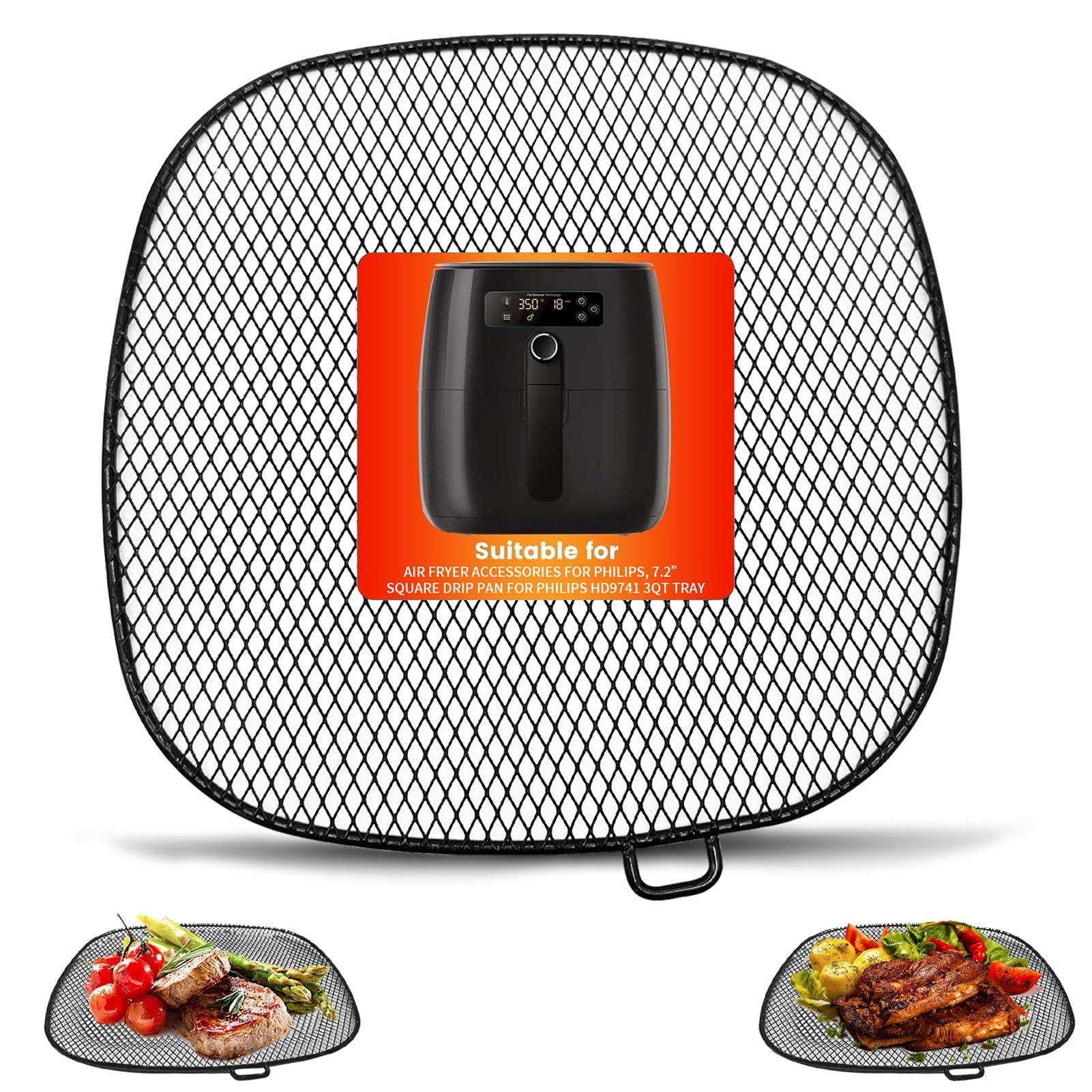 Air Fryer Accessories for Philips, 7.2” Square Drip Pan for Philips HD9741 3QT Tray Rack Compatible with HD9641 HD9721, HD9730, Di