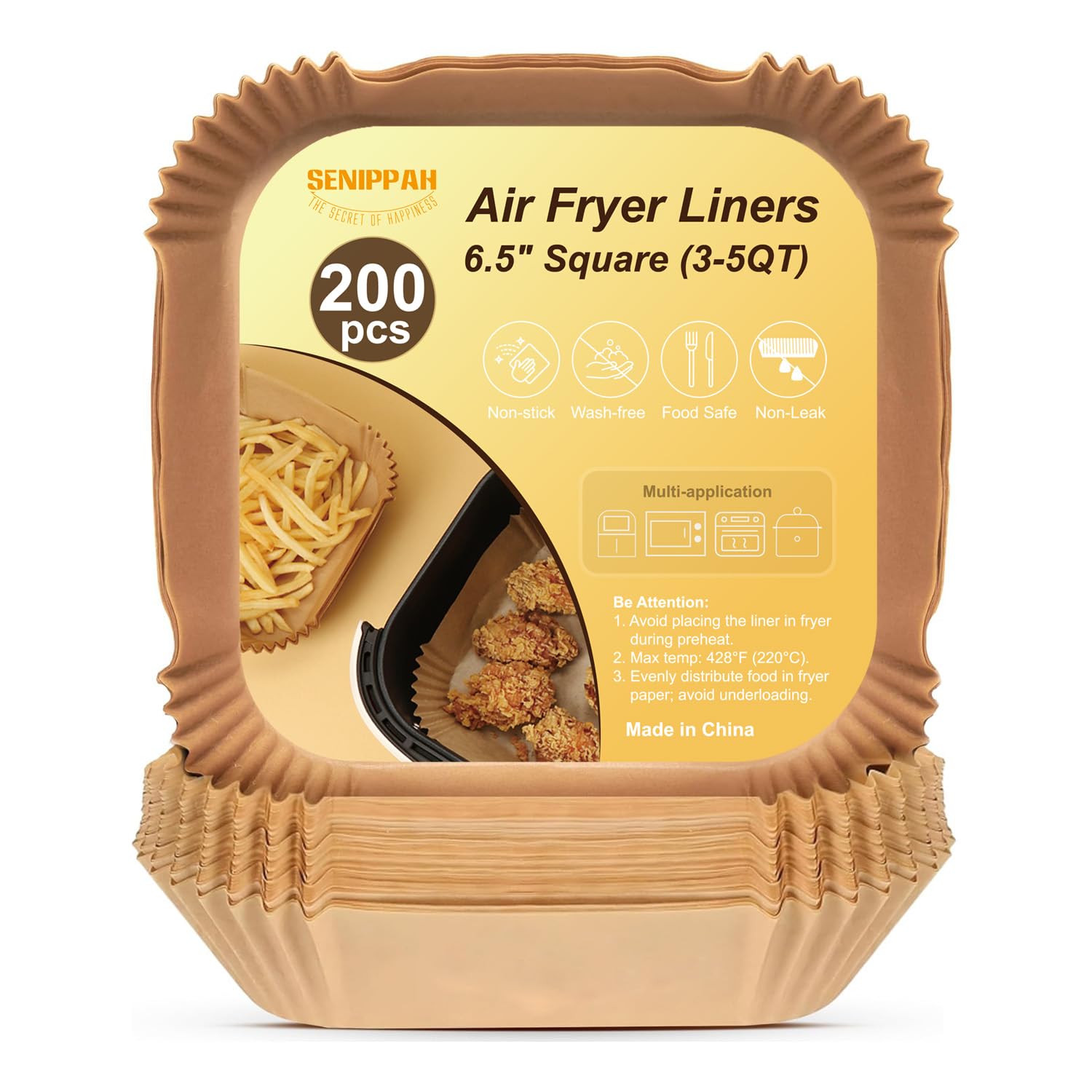 200 forros para freidora de aire de 6.5 pulgadas, papel pergamino cuadrado para hornear, sin blanquear, desechable, antiadherente,