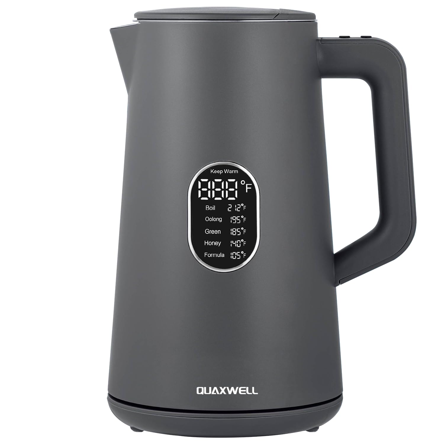 1.5L Electric Kettle Stainless Steel, Double Wall Cool Touch Teapot, Fast Boil,5 Temperature Control, LED Display, Auto Shut-Off,