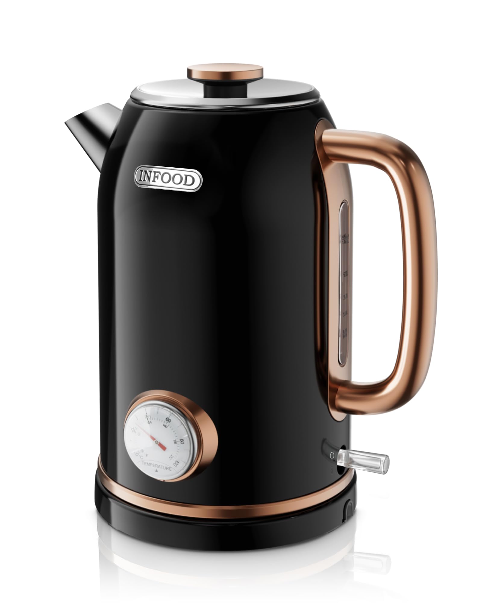 Hervidor eléctrico retro, hervidor de agua caliente de 1.8L/60.8 onzas con termómetro, hervidor de té de acero inoxidable de calen