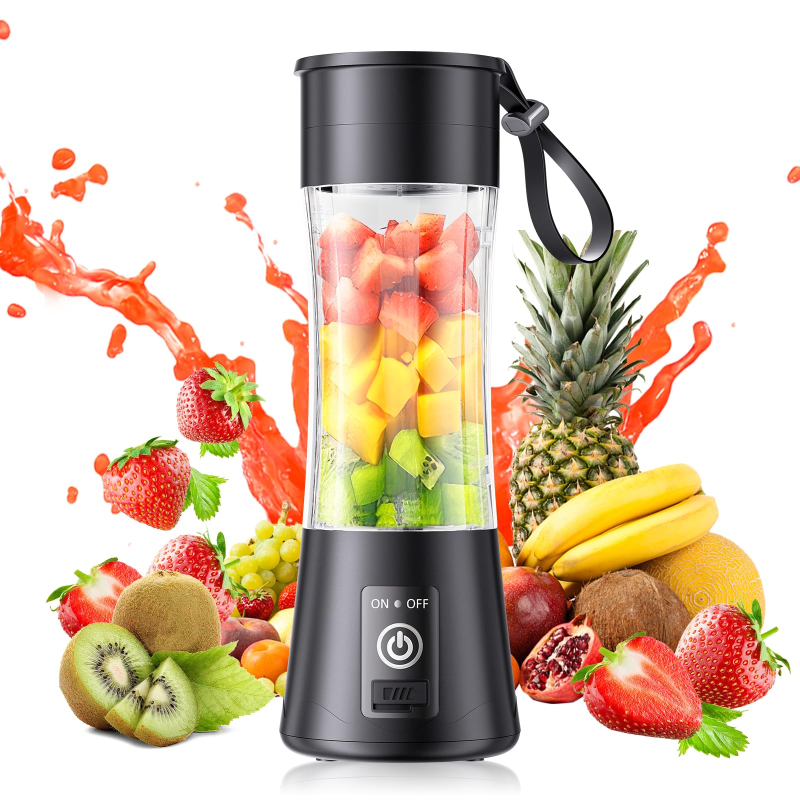 Mini licuadora inalámbrica para hacer batidos y batidos, licuadora portátil con taza de viaje de 12.8 fl oz sin BPA, recargable po