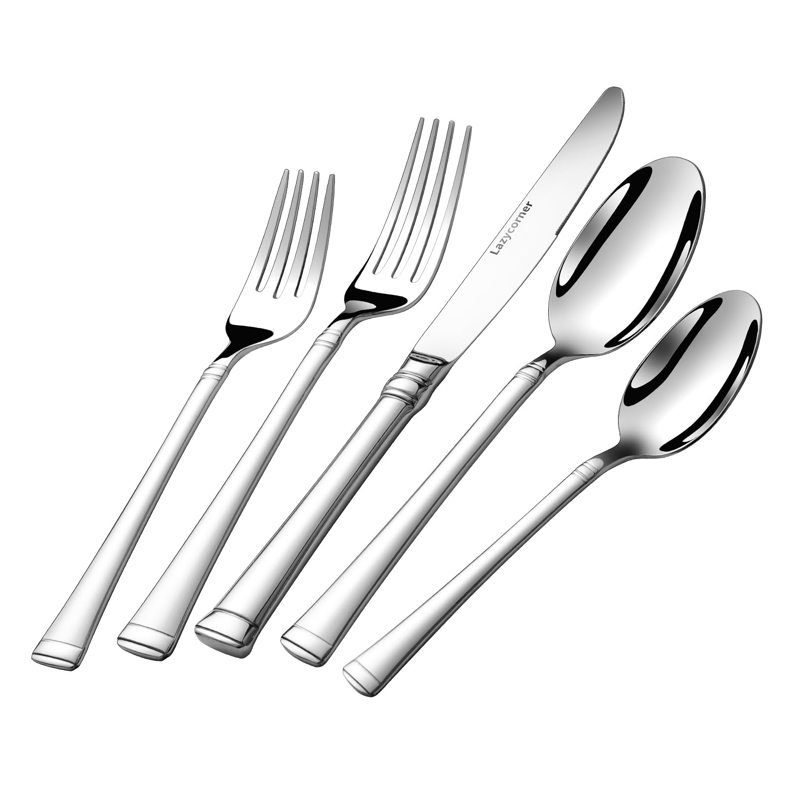 KINGSTONE Juego de cubiertos de lujo de 20 piezas para 4, juego de cubiertos de acero inoxidable 18/10 con patrón de corte de diam