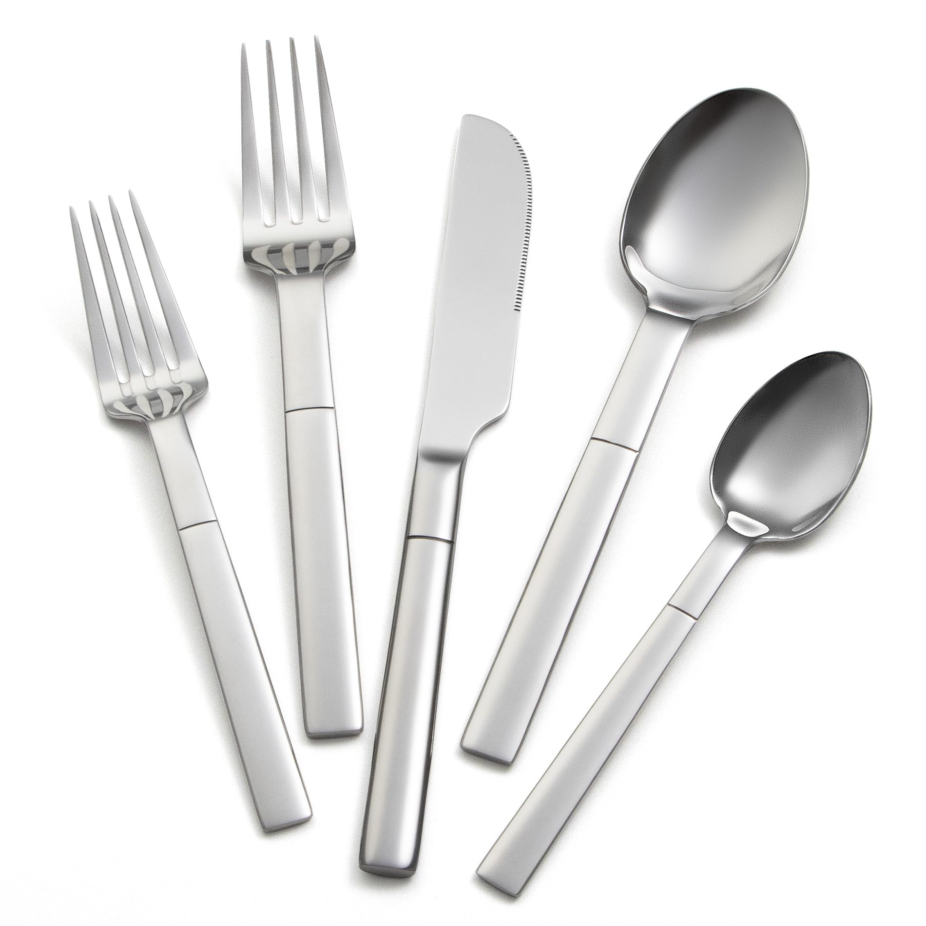 Juego de cubiertos de acero inoxidable de 40 piezas para 8 piezas con mango plano ancho, pulido con espejo, juego de utensilios de