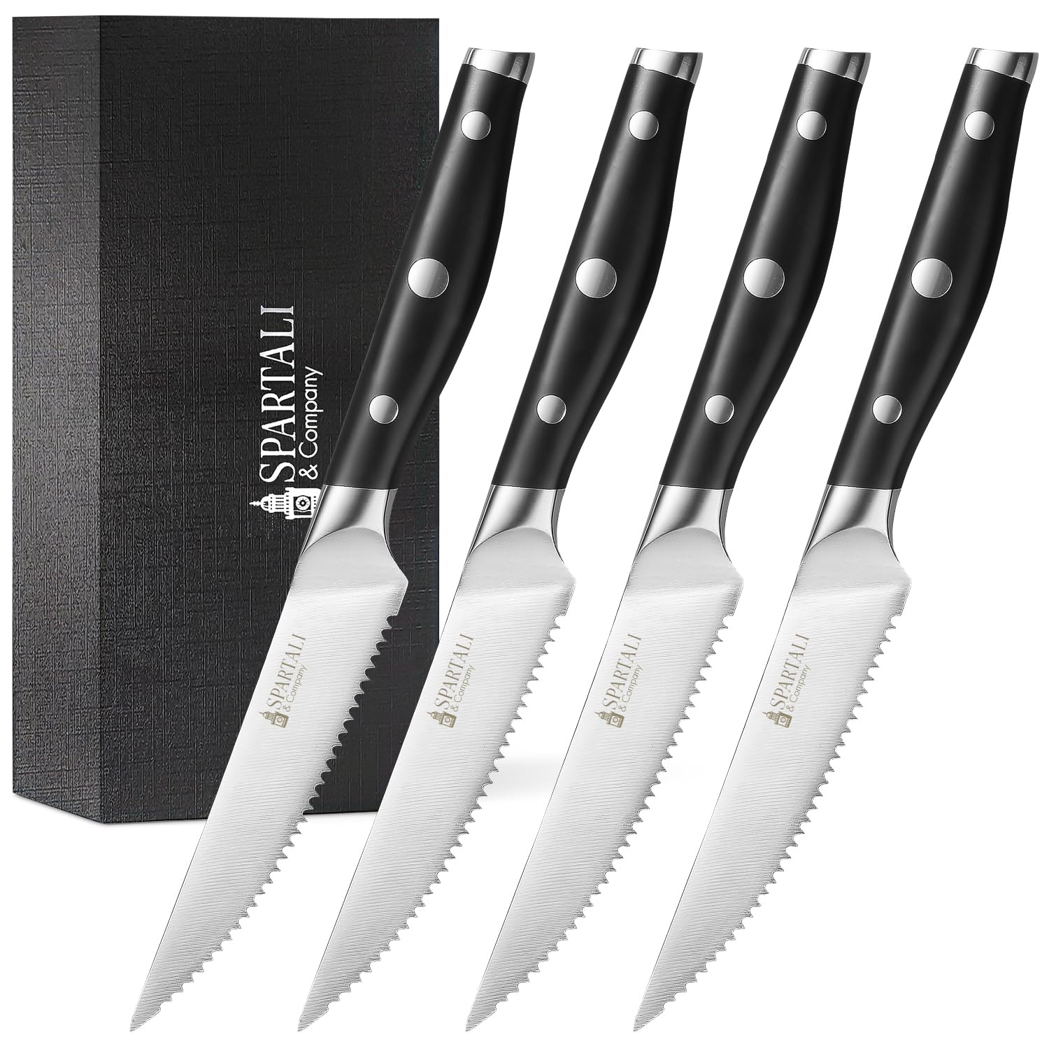 Spartali & Company Premium 4.5-Inch Steak Knife Set of 4 – Serrated Stainless Steel Blades with Ergonomic Handles – Razor-Sharp Cu