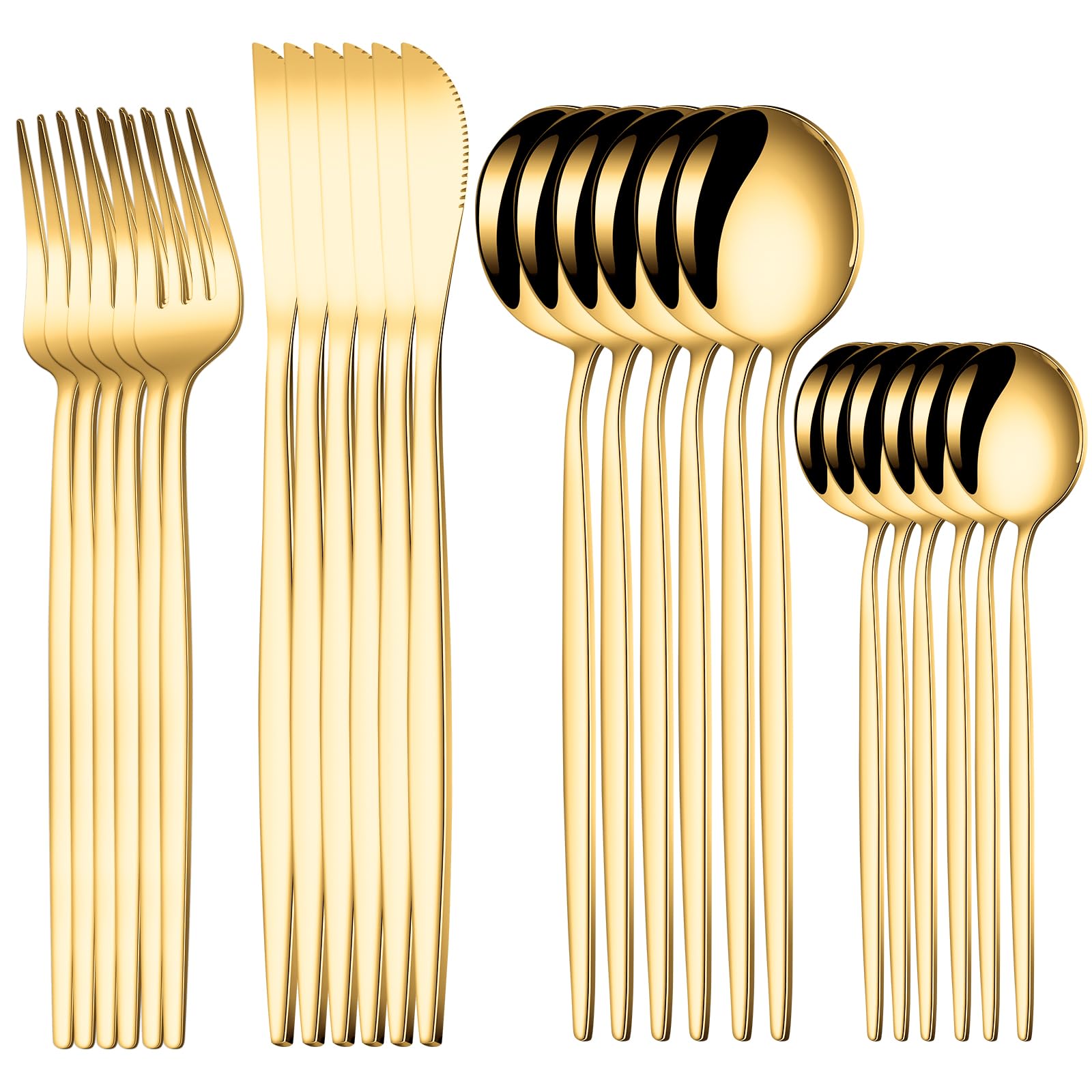 Juego de cubiertos dorados de 24 piezas para 6, juego de cubiertos de acero inoxidable, juego de utensilios de comida, cubiertos i