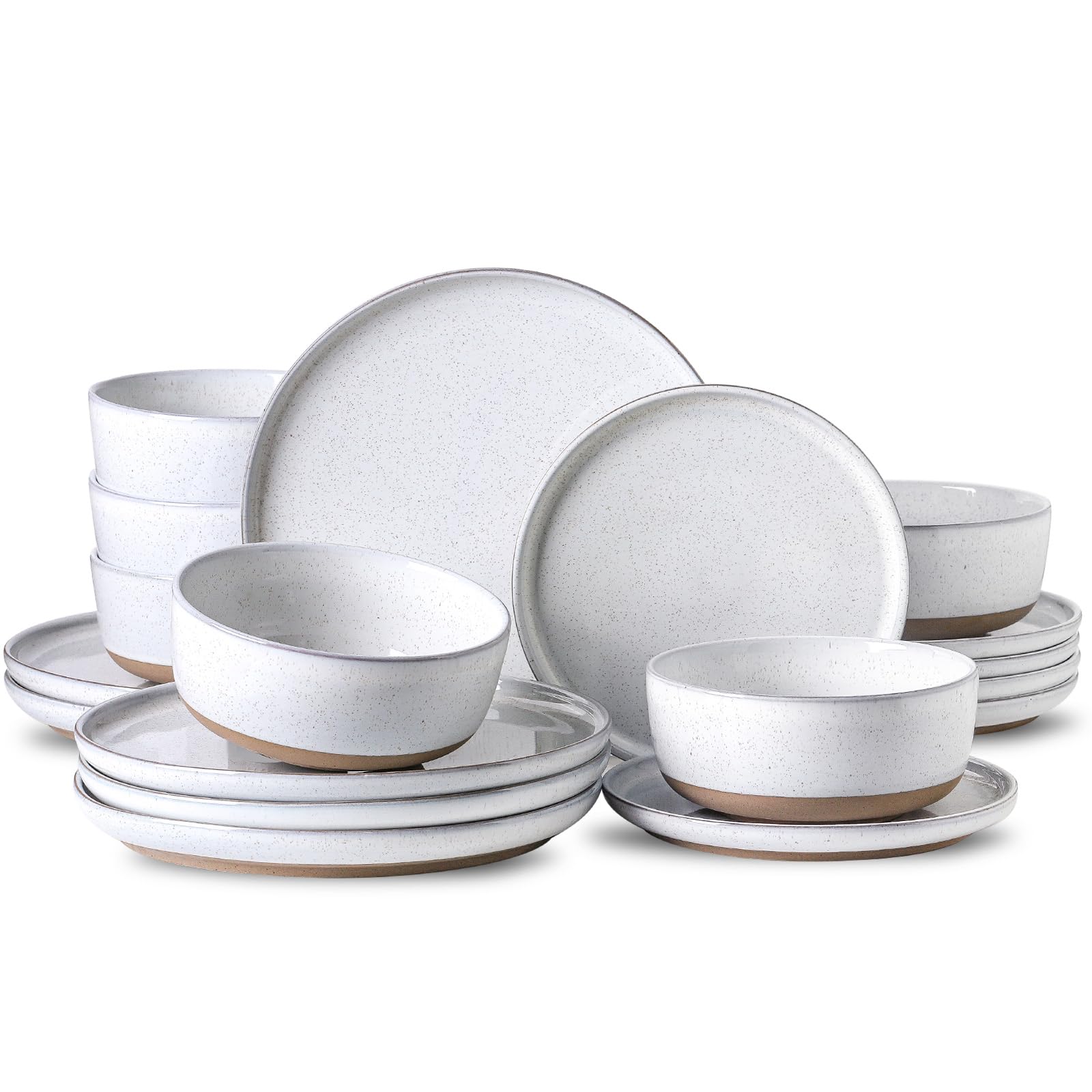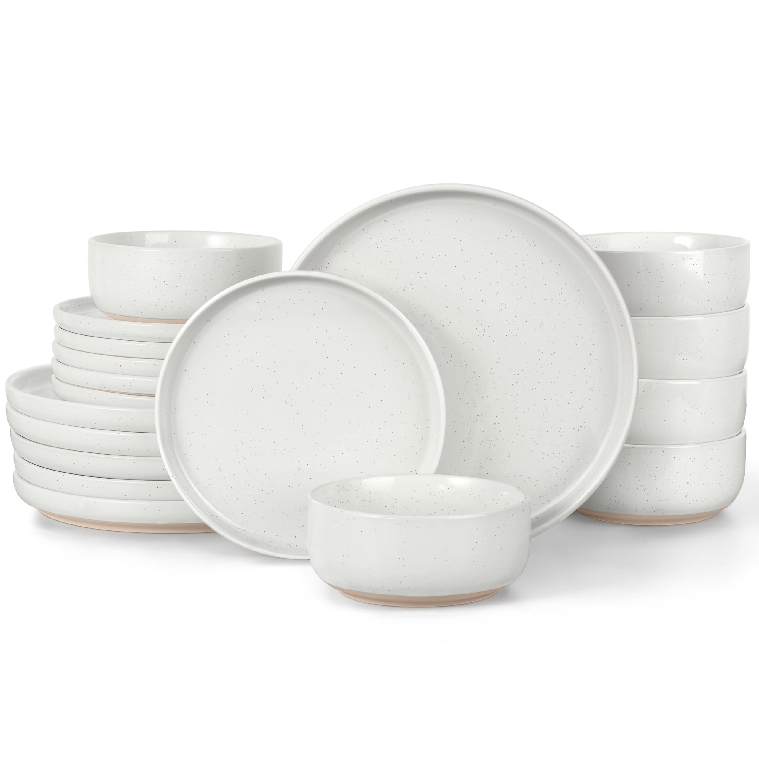 Sweese Juego de platos y cuencos, juego de vajilla redonda de porcelana de 18 piezas para 6, resistente a los arañazos, apto para