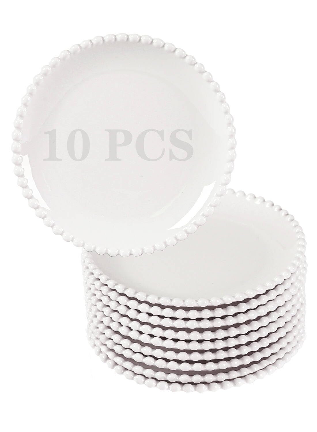 TAMAYKIM Platos de postre de porcelana de 7.5 pulgadas, 10 piezas, platos de aperitivo, juegos de vajilla redondos, resistentes a