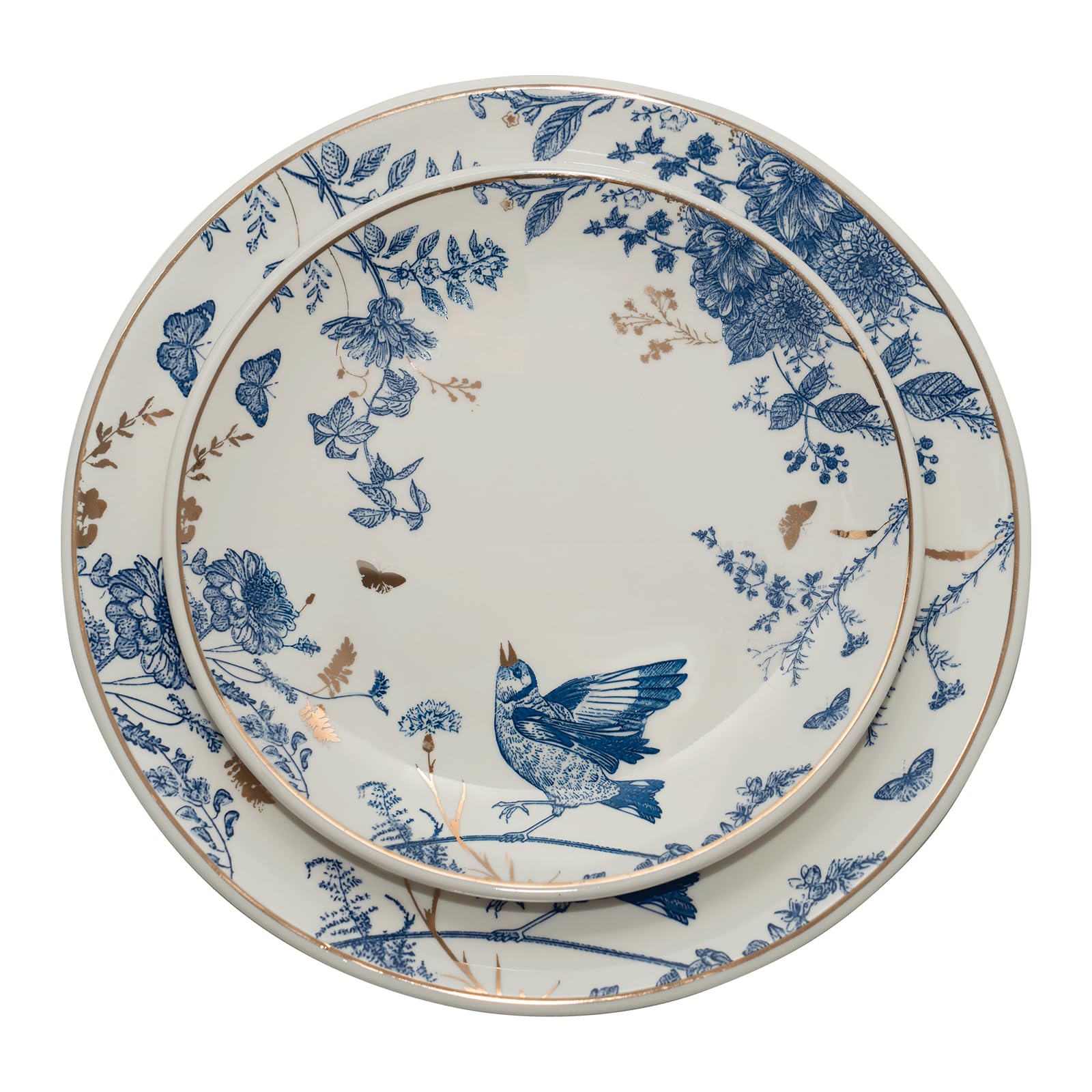 Platos florales de porcelana de cerámica de 8/10 pulgadas, juego de 4, platos de postre azul y blanco, juego de platos de ensalada
