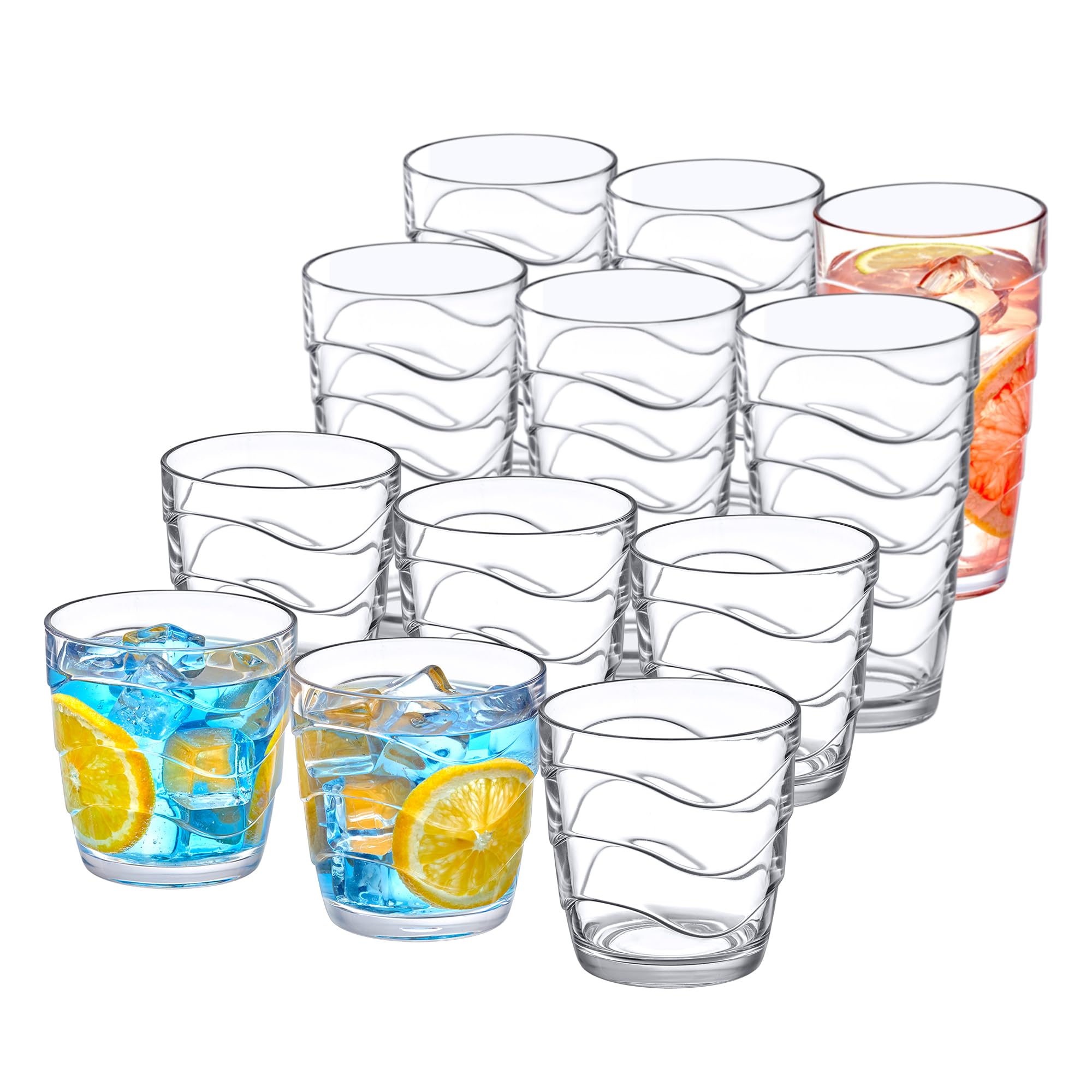 Amazing Abby – Wavely – Vasos de plástico de 14 onzas y 20 onzas (juego de 12), vasos de plástico reutilizables totalmente transpa