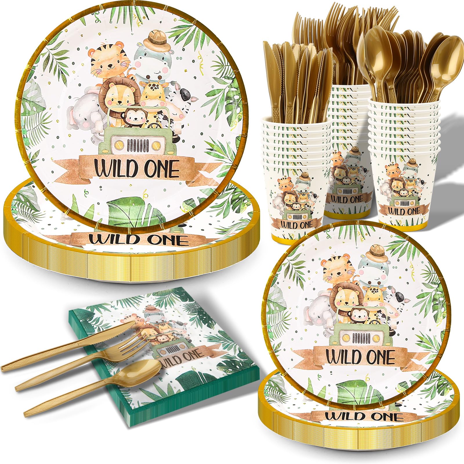 Wild One – Juego de vajilla de decoración de cumpleaños, suministros de fiesta de safari que incluyen platos, servilletas, tazas,