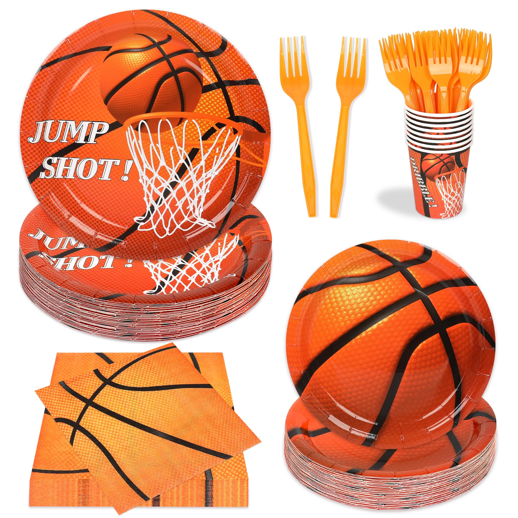 Juego de 120 platos de papel de baloncesto, servilletas, suministros de fiesta de cumpleaños, juego de vajilla desechable para el