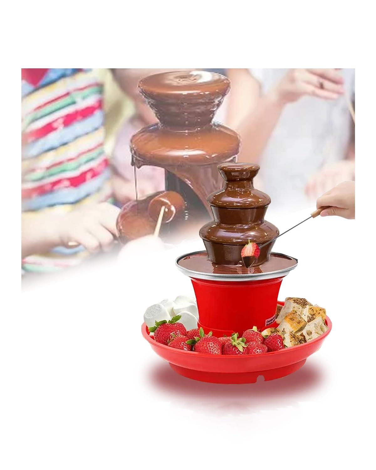Huanyu Mini máquina de fuente de chocolate de 3 niveles, 10 brochetas de bambú, bandeja de servir extraíble, fuente de fondue de c