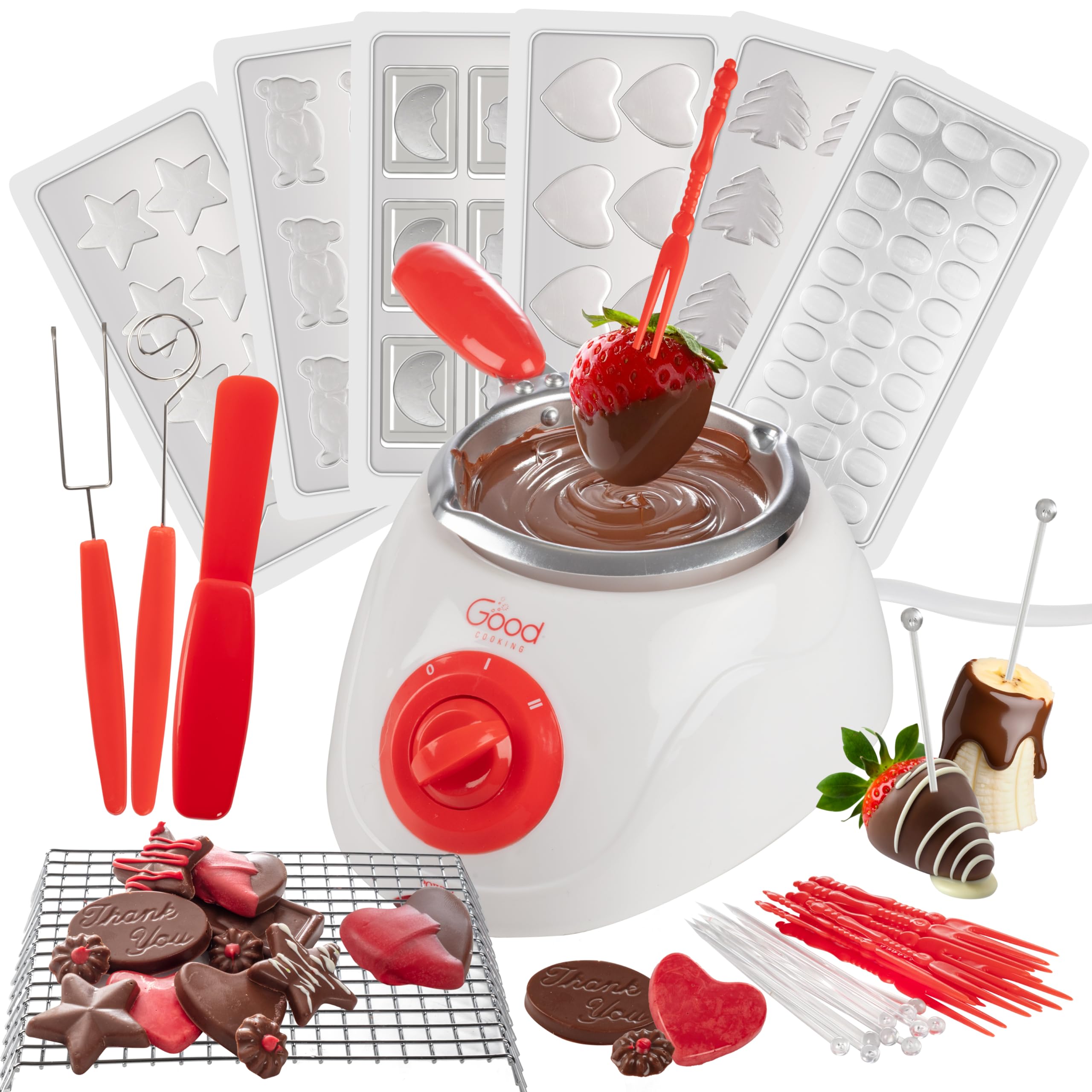 Nostalgia Olla para fondue de chocolate y caramelo, 25 varillas, máquina de fondue con bandejas decorativas y coberturas, color ma