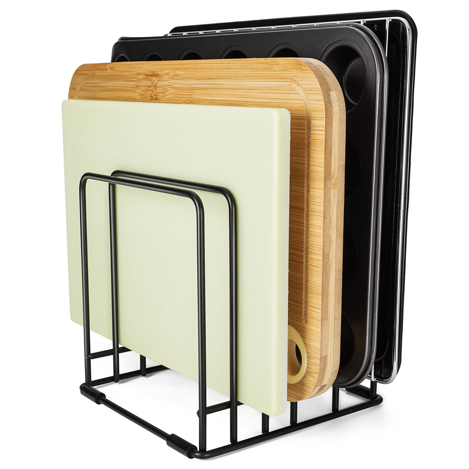 Organizador de tabla de cortar para gabinete de cocina, estante de almacenamiento de hojas de galletas, soporte divisores de gabin