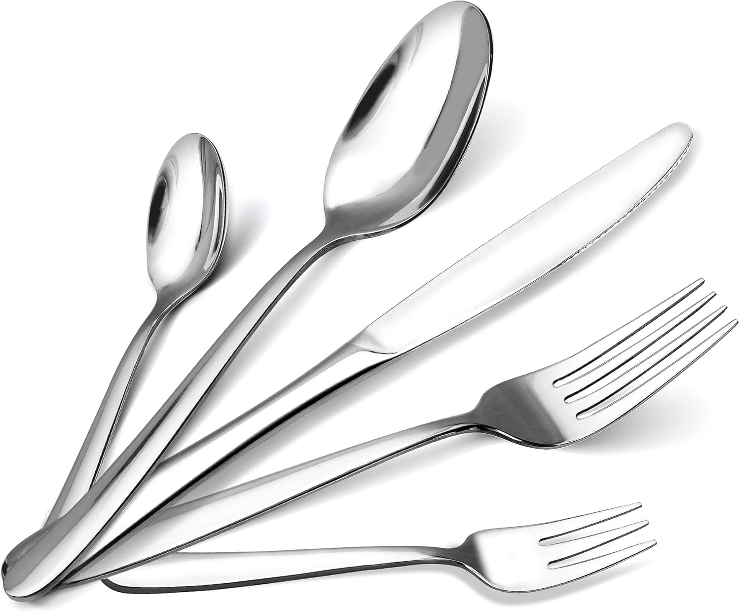 Juego de cubiertos de acero inoxidable de 20 piezas, servicio para 4, cubiertos duraderos 18/0 con diseño ergonómico, vajilla apta