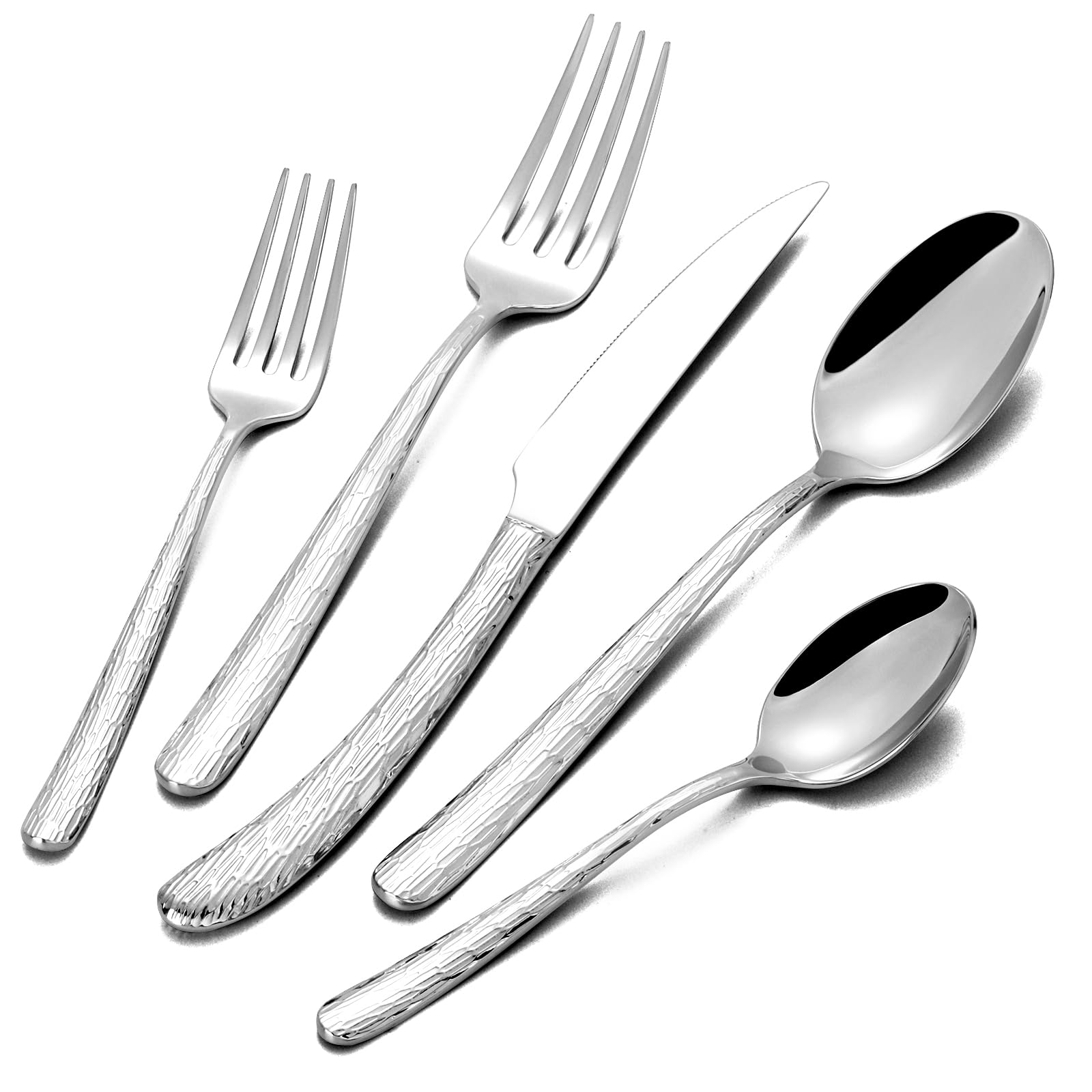 Alata Emma – Juego de cubiertos de 40 piezas de 18/10, juego de cubiertos martillados, acero inoxidable resistente, utensilios de