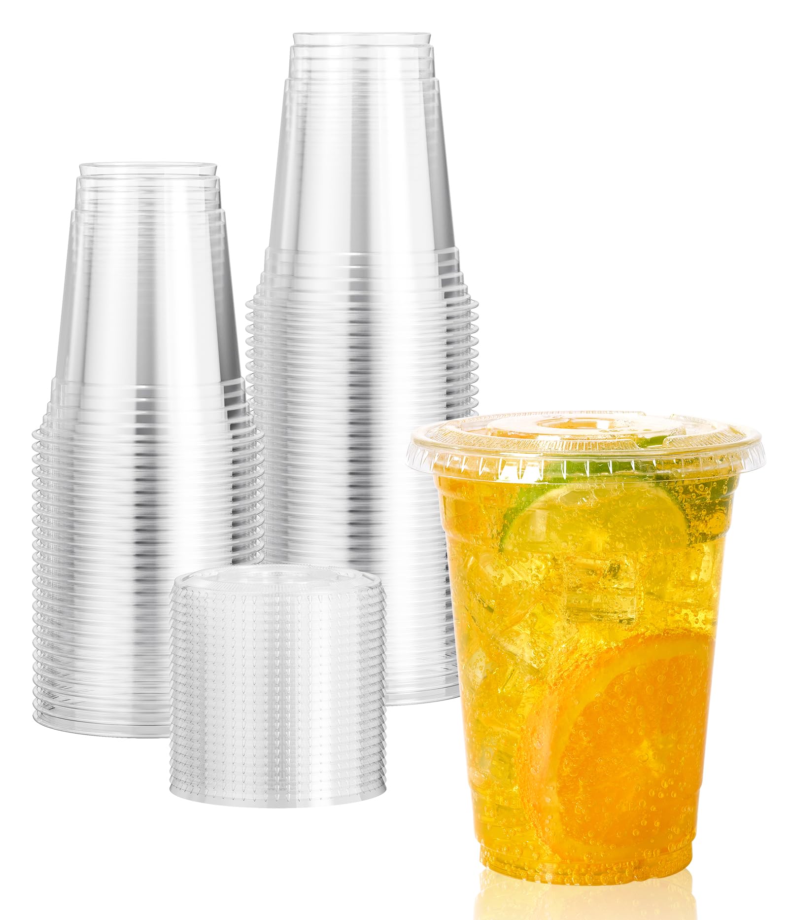Vplus Paquete de 160 vasos de plástico transparente PET de 16 onzas con tapas, vasos de plástico desechables en frío de 16 onzas c