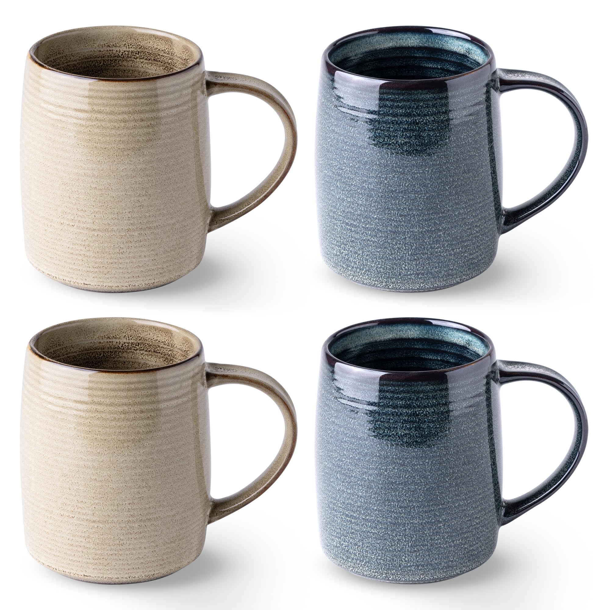 Juego de 4 tazas de café de cerámica de 13 onzas con mango grande, tazas de té grandes de gres para bebidas calientes, yogur, capu
