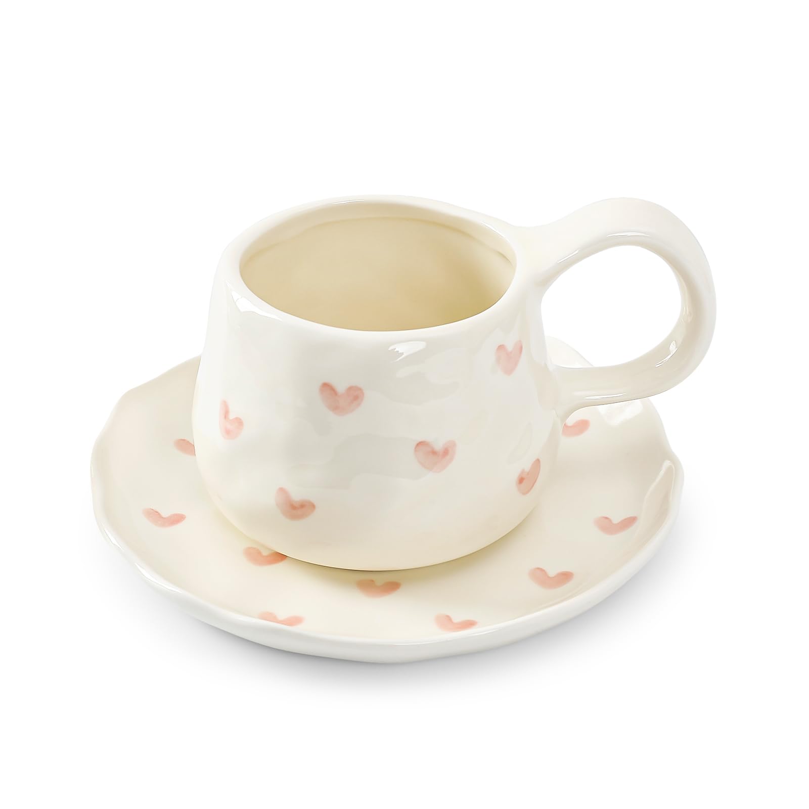 Koythin Juego de tazas de café de cerámica con platillo, 8.5 fl oz / 8 onzas, bonita taza de café floral irregular, tazas de coque
