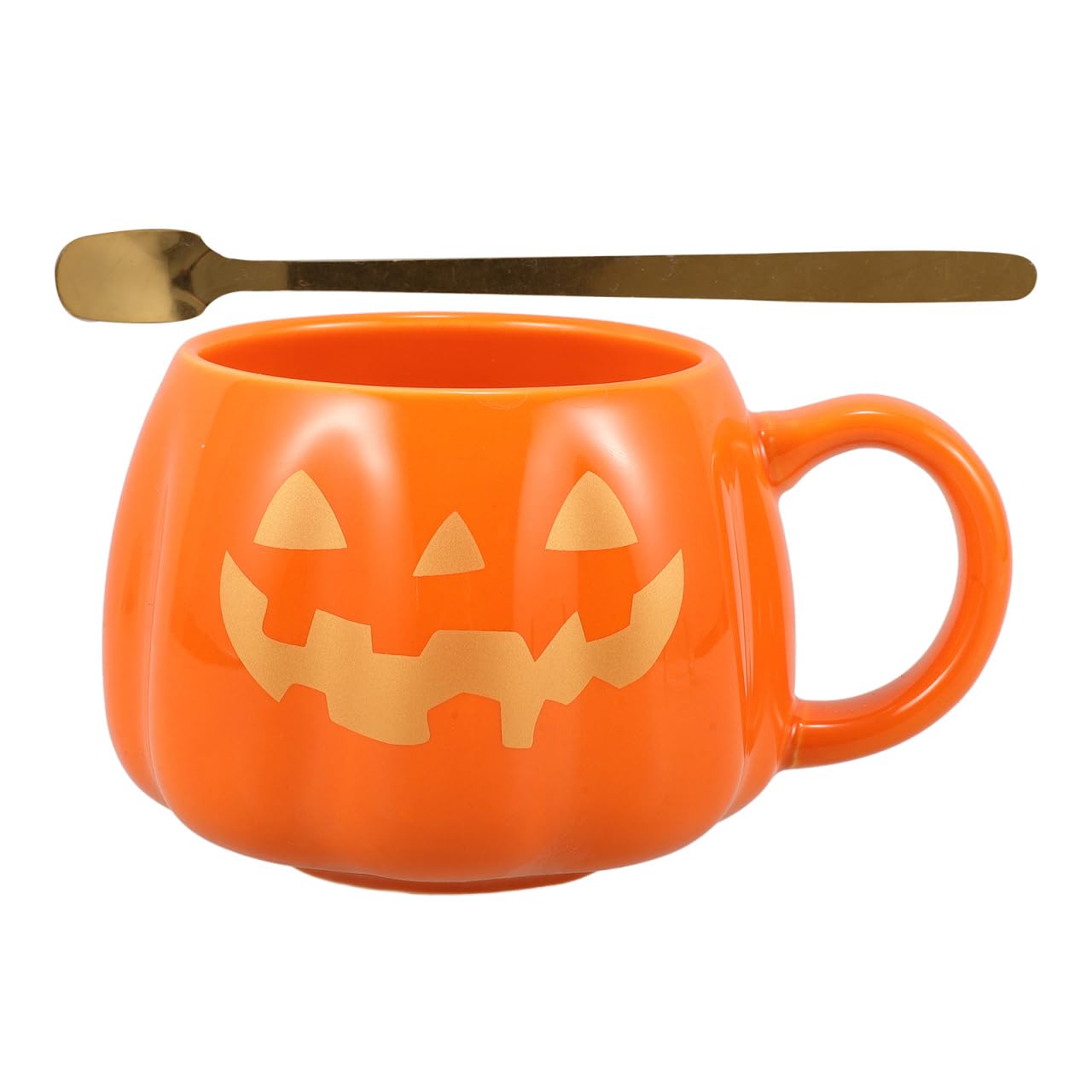 Halloween Pumpkin Ceramic Mug Cup: Cute Ghost Pumpkin Molding Mug with Spoon for Coffee Tea Juice Milk & Water (Golden)