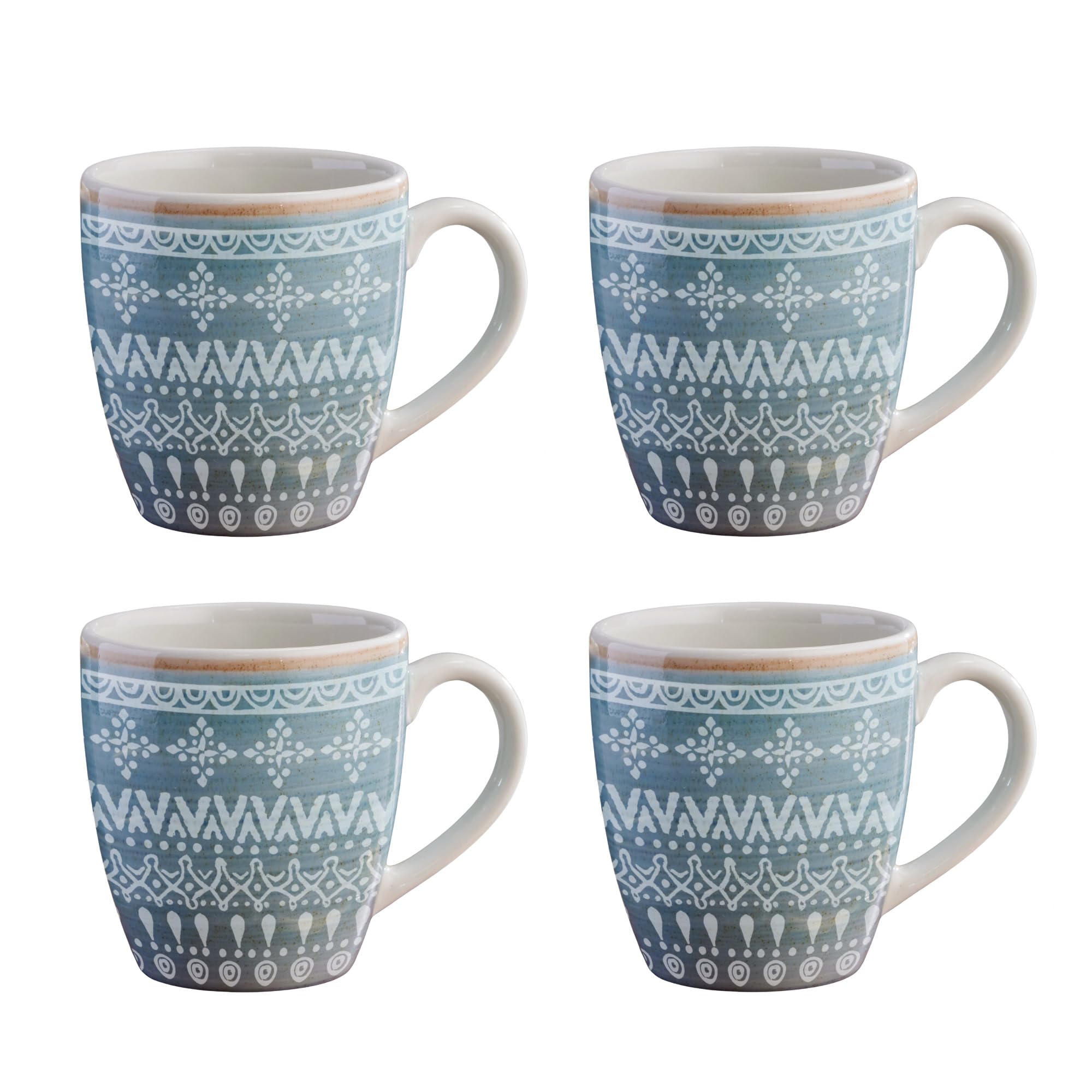 Juego de 4 tazas Corona | Perfecto para los amantes del café y el té | Congo 12.8 oz -380cc | 4 piezas | Cerámica | Diseño étnico