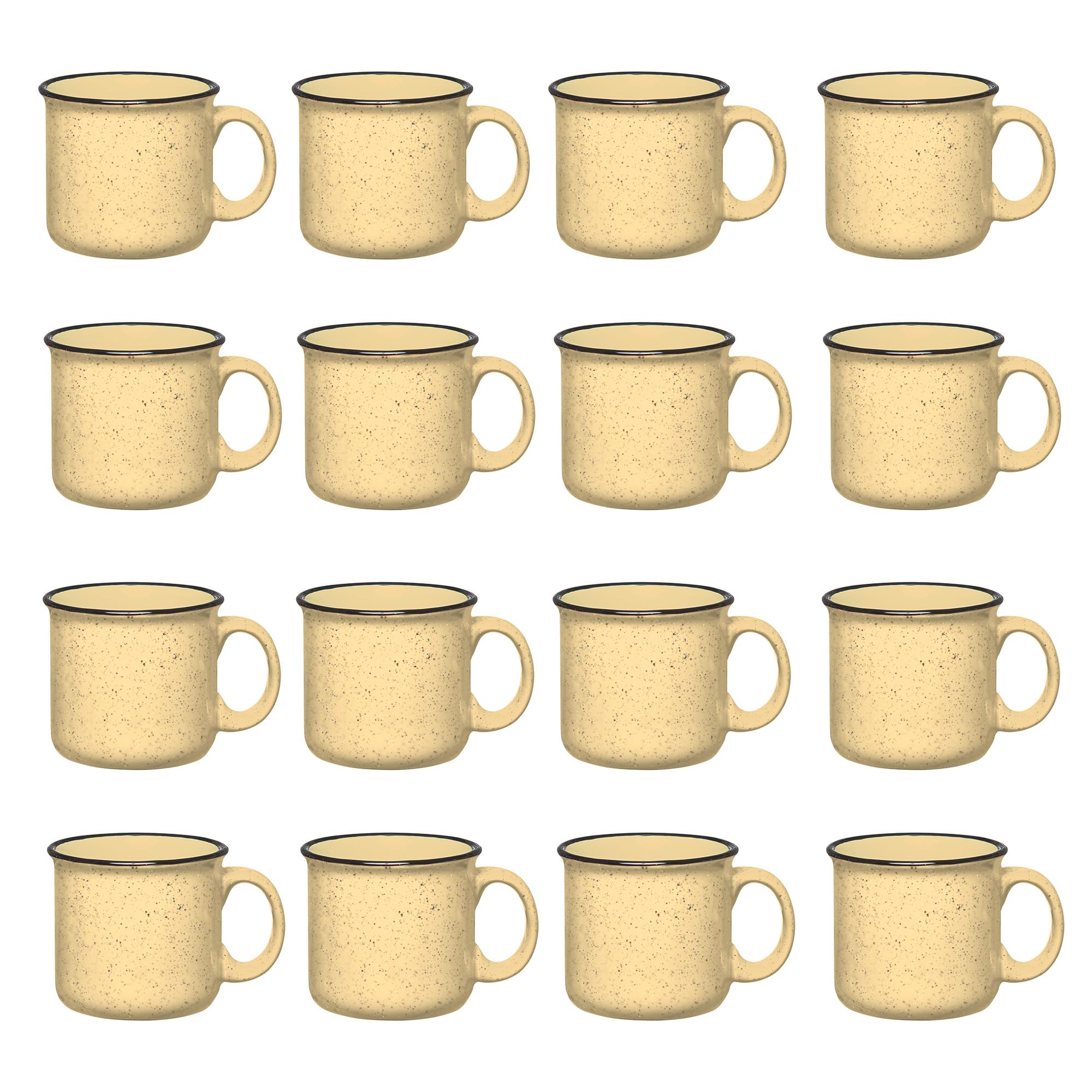Juego de 16 tazas de cerámica para fogata, 15 onzas, amarillas, tazas de café y té para el hogar, trabajo, viajes, camping, person
