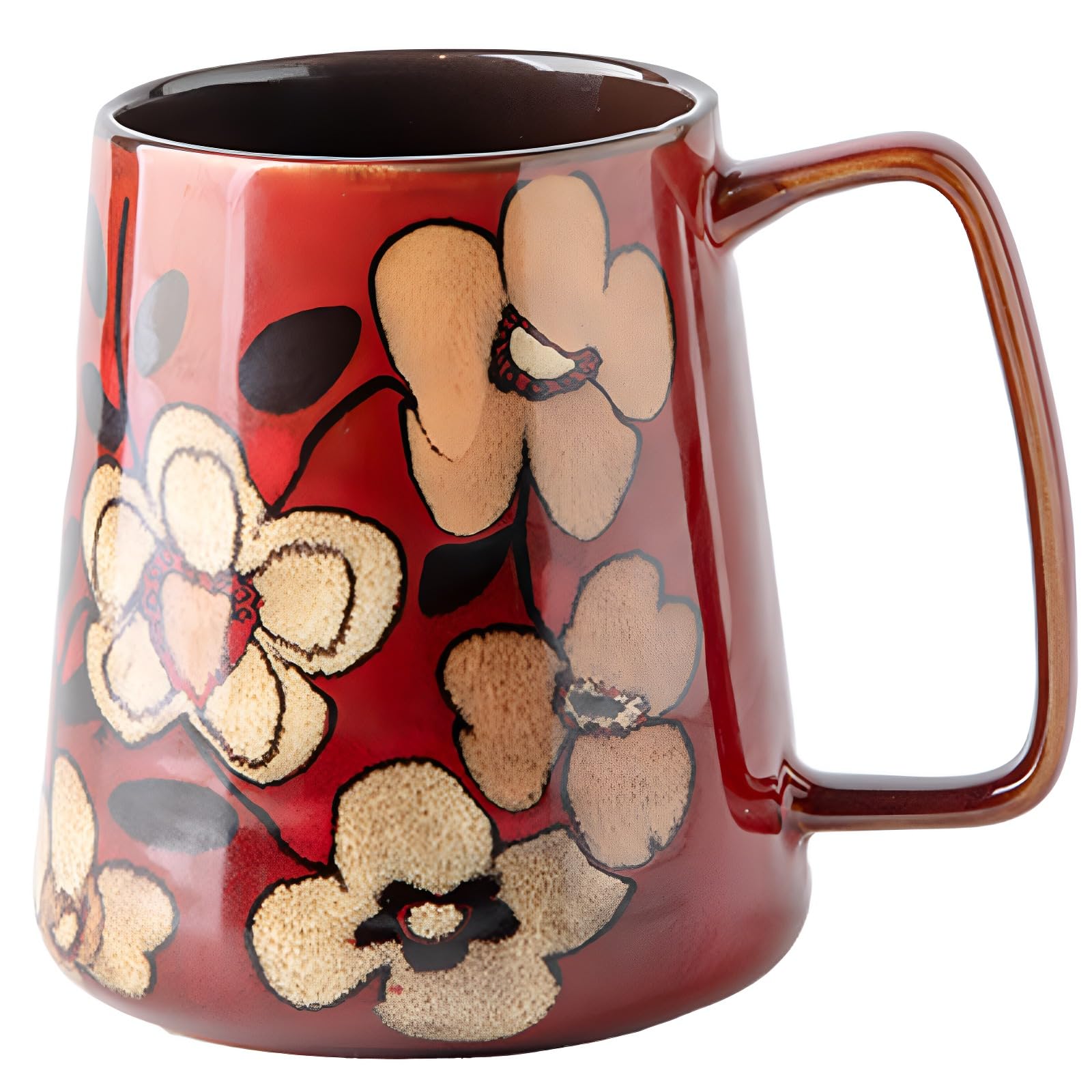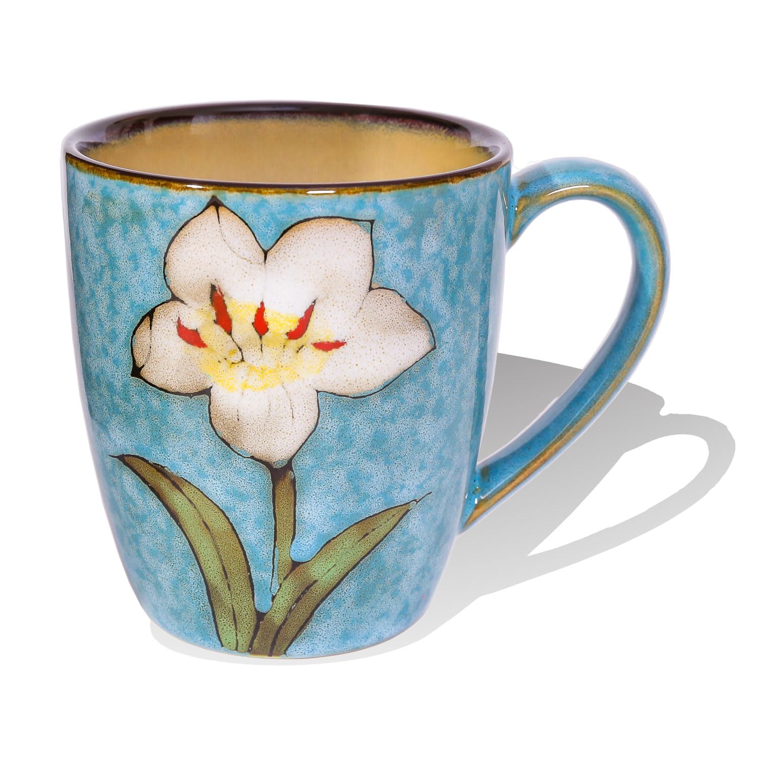 DUSVALLY Taza de café de cerámica para oficina y hogar, pintada única con taza, taza de flores, tazas grandes de 17 onzas