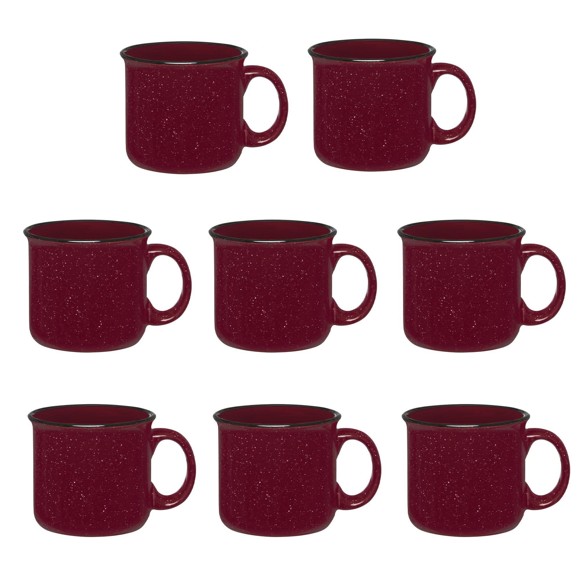 Juego de 8 tazas de cerámica para fogata, 15 onzas, color granate, tazas de café y té para el hogar, trabajo, viajes, camping, per