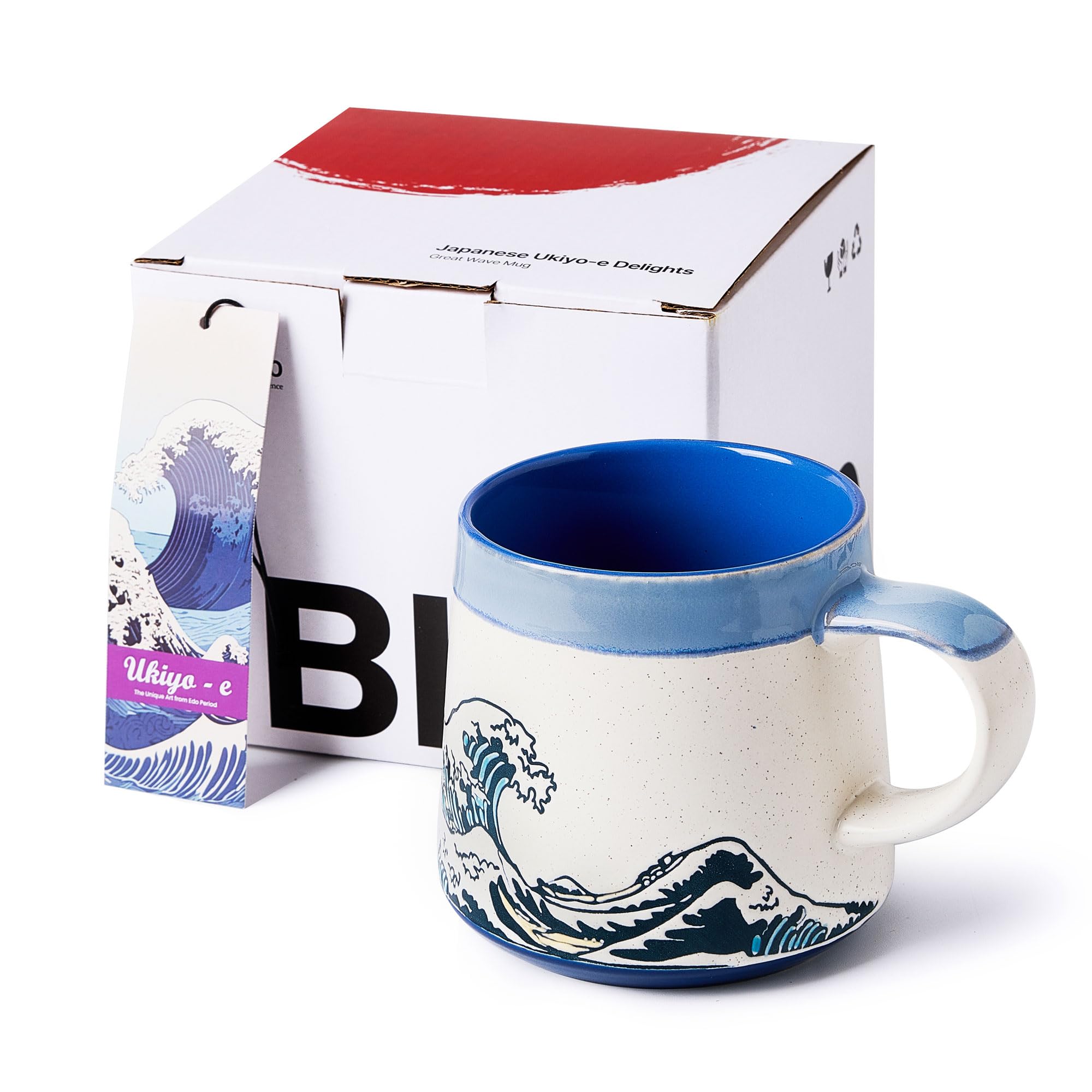 Taza de café japonesa Ukiyo-e de cerámica grande hecha a mano de 15 onzas, taza de té grande de cerámica artística para oficina y