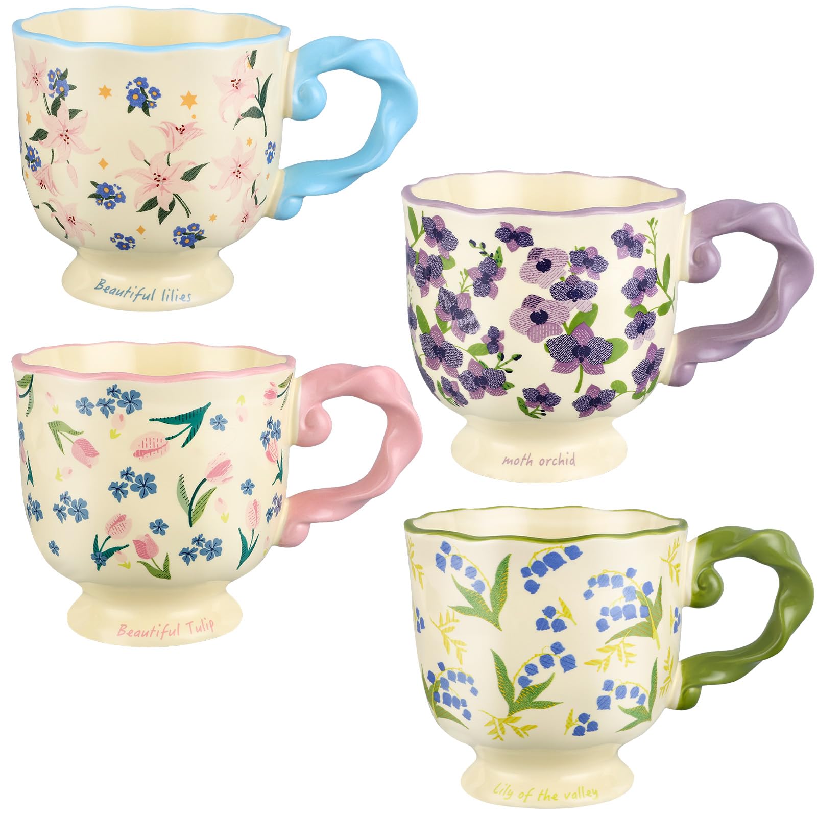 Juego de 4 tazas de café, tazas de cerámica con flores vintage de 12 onzas, tazas estéticas de porcelana para té caliente, café, s