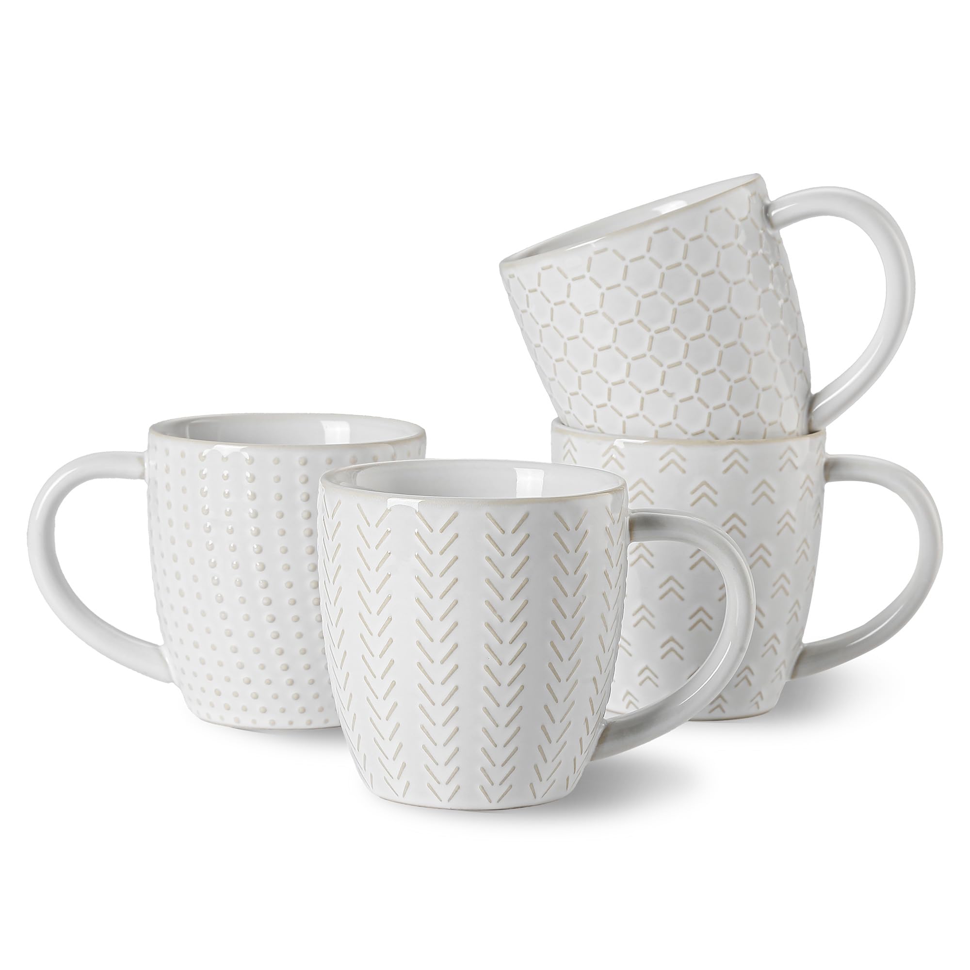 Lareina Juego de 4 tazas de café de cerámica de 12 onzas para café con leche, té caliente, capuchino, moca, cacao, regalo de boda