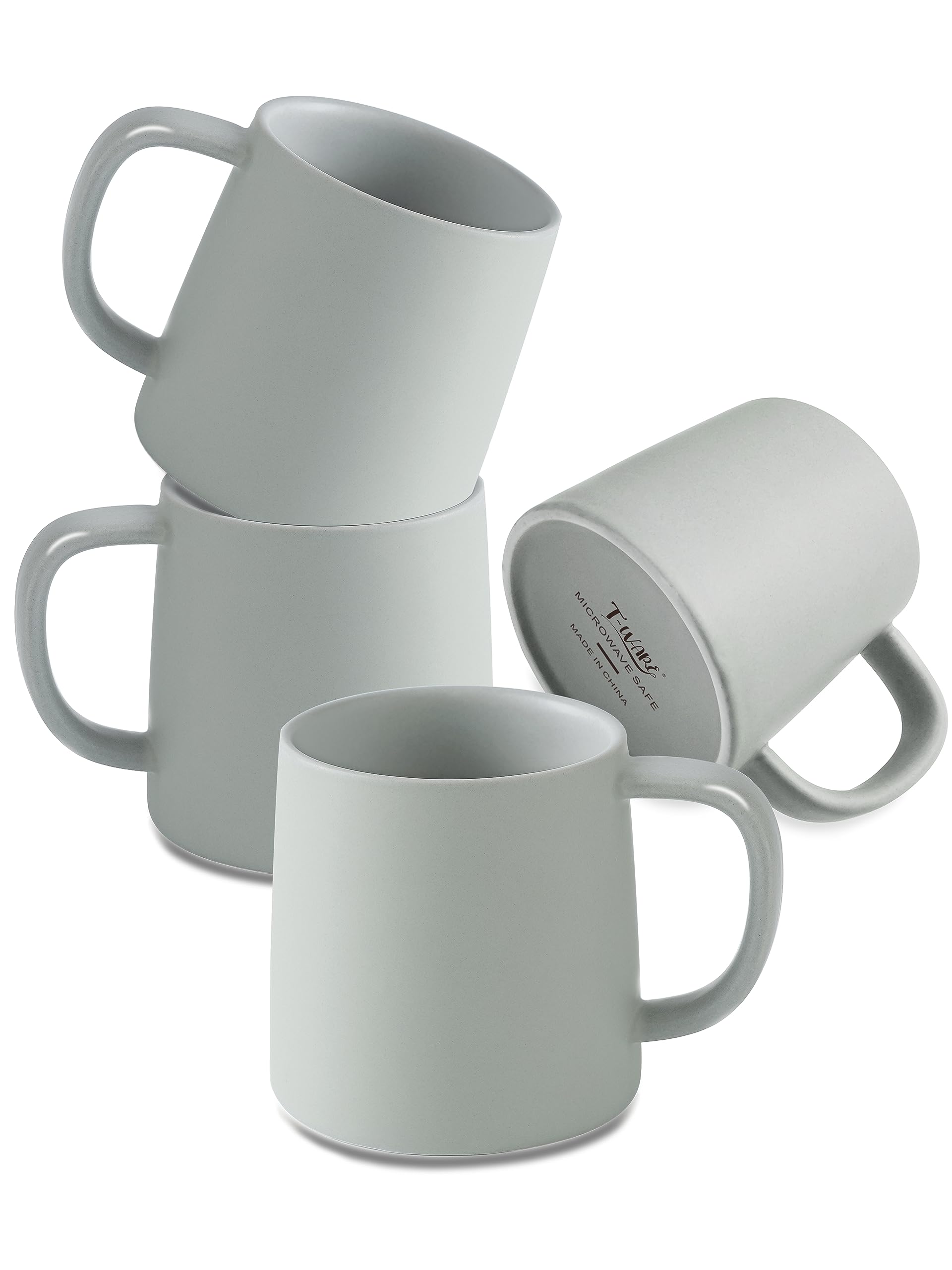 Tazas de café de 16 onzas, juego de 4 tazas de café gris claro mate, tazas de café de cerámica de color sólido