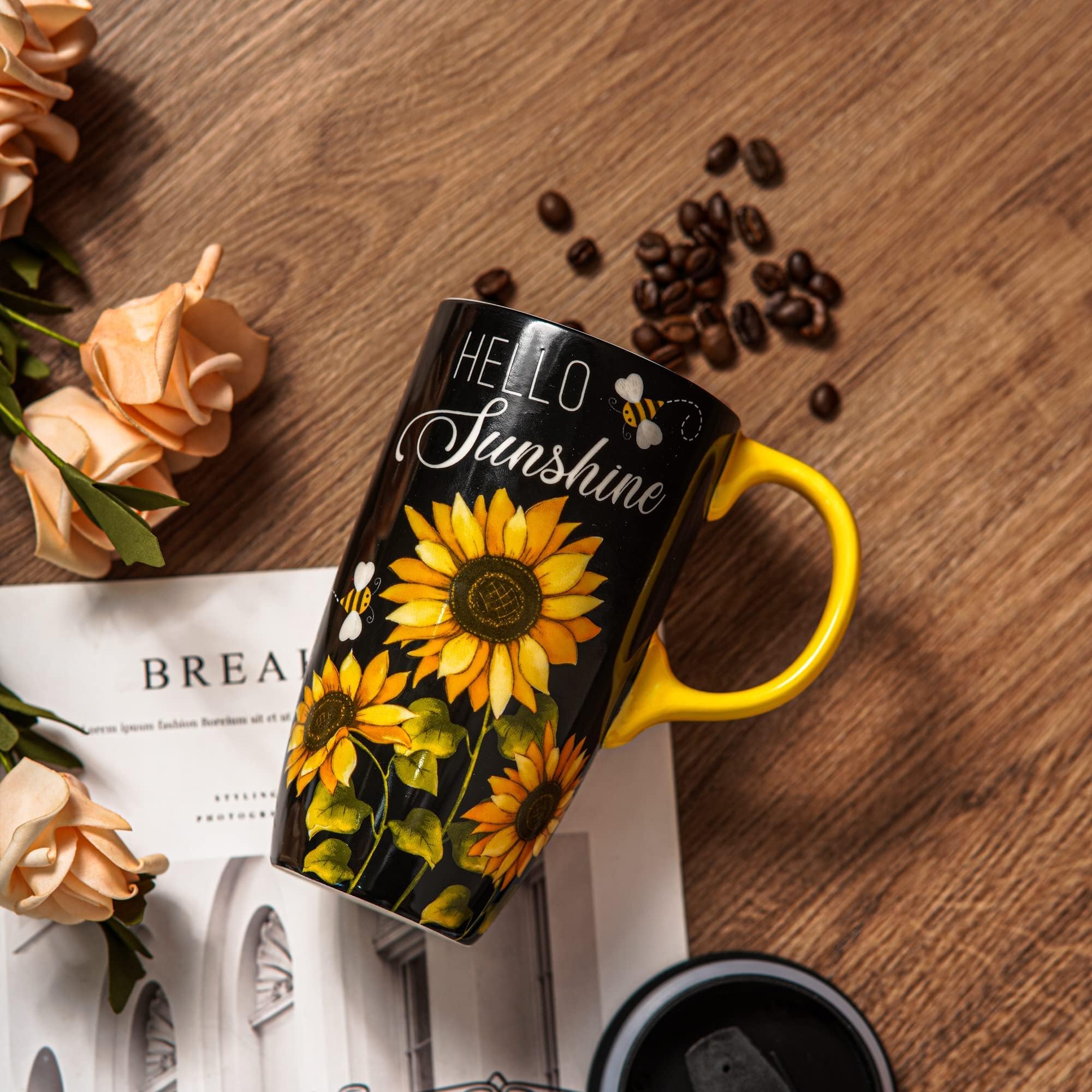 Topadorn Taza de cerámica de café de porcelana con tapa de 17 onzas, tazas de café novedosas para hombres y mujeres, oficina y hog