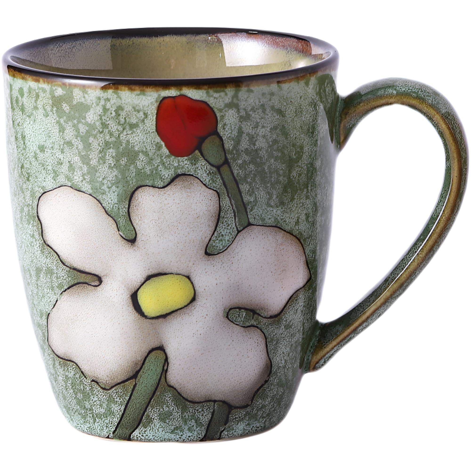 Taza de café de cerámica de 12 onzas con asa, taza de capuchino floral vintage pintada a mano, adecuada para tazas de té, tazas de