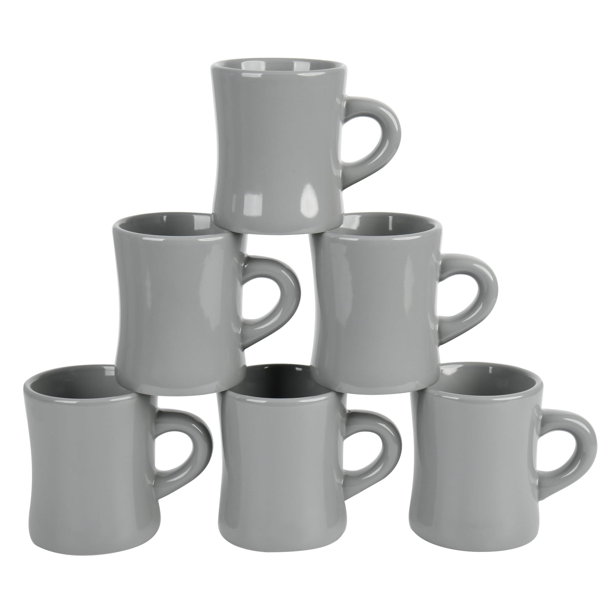 Juego de tazas de café de cerámica de 11 onzas para restaurante, comedor, granja, cafetería, hogar juego de 6 (gris)