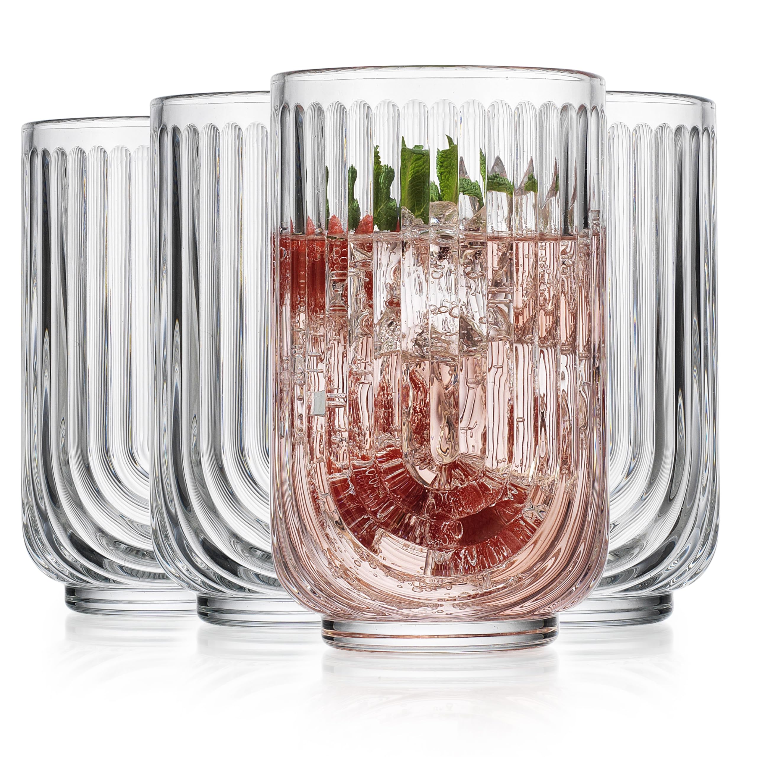 Glaver’s Juego de 4 vasos de cóctel vintage ondulados de 17 onzas, vasos de vidrio altos acanalados. Cristalería art déco diseñada