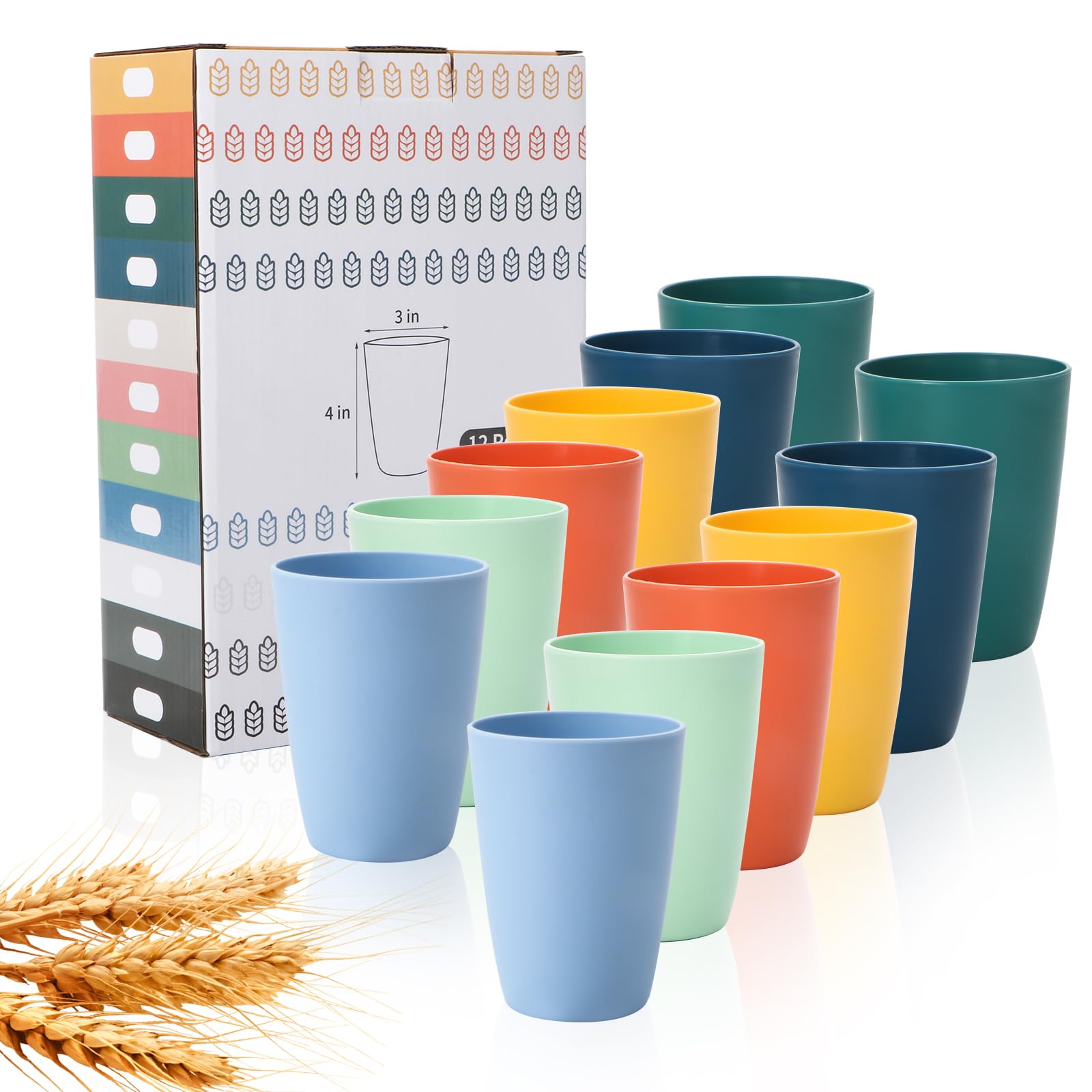 Lazycorner Vaso de paja de trigo, 12 unidades, vasos irrompibles, vasos de plástico reutilizables para agua con 6 colores (12 onza
