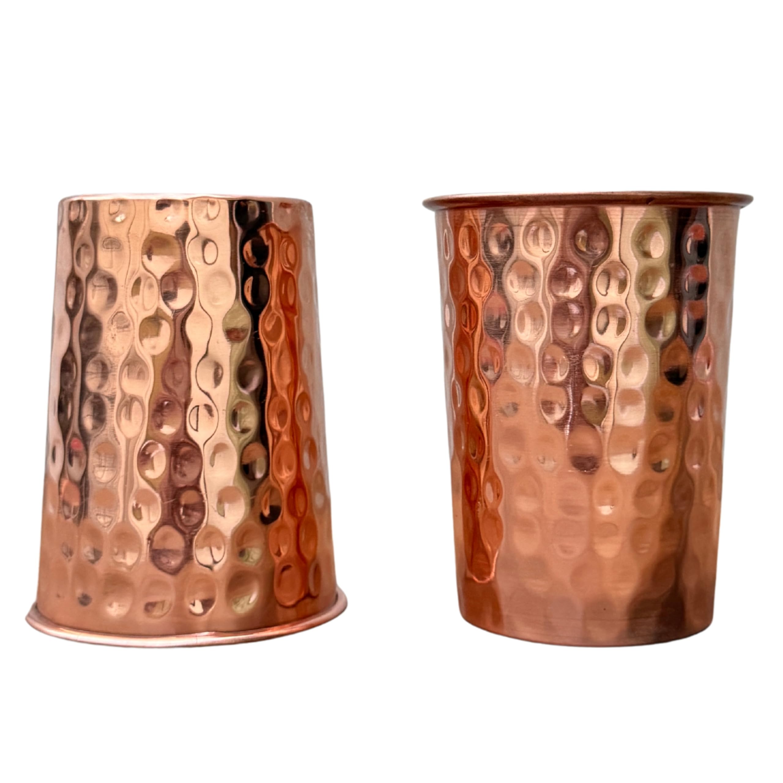 Juego de 2 vasos de cobre puro martillado para agua potable, vasos de cobre para beneficios de salud ayurveda, sin recubrimiento y