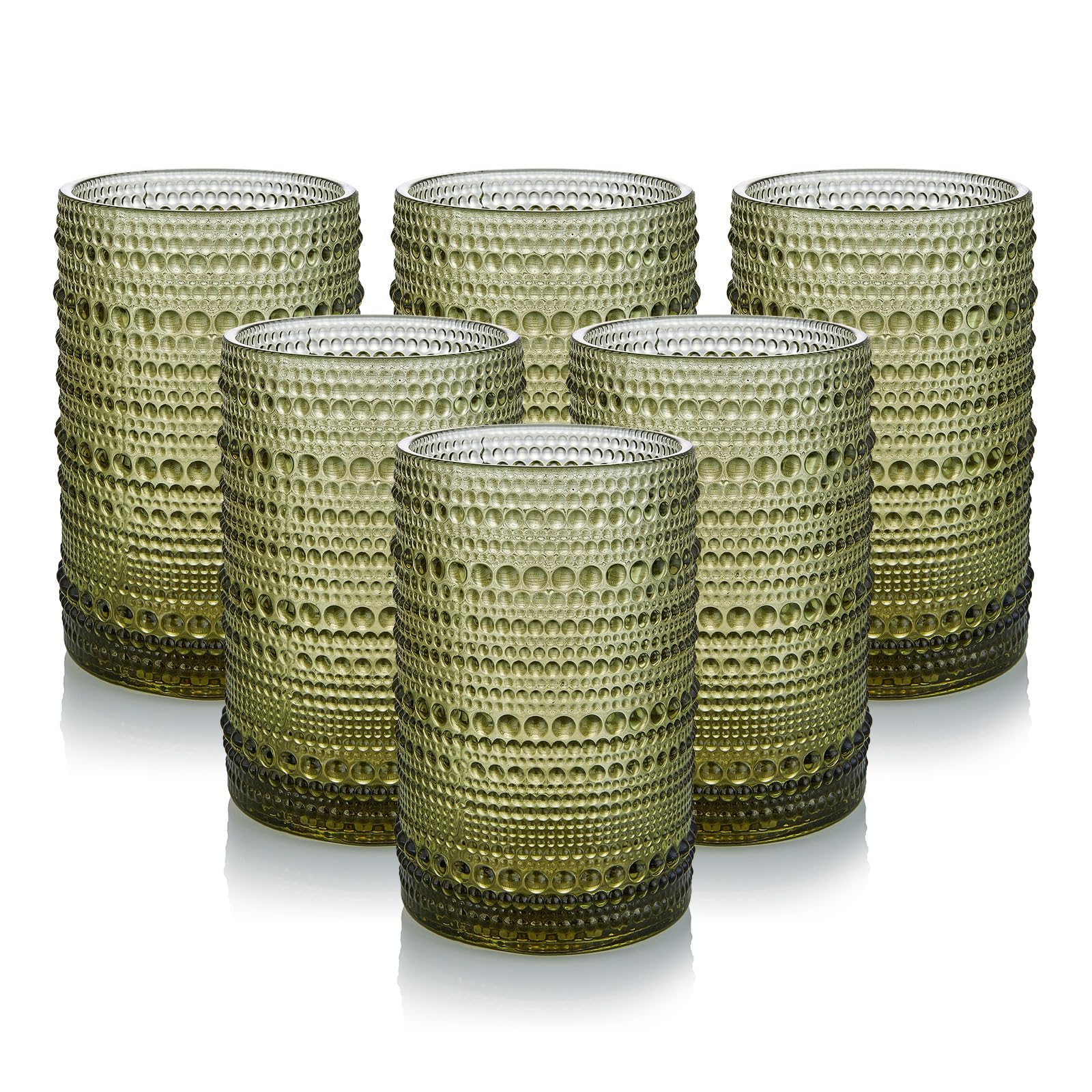 Hobnail – Juego de vasos para beber de 6.15 onzas, juego de vasos de cóctel vintage, vaso de agua verde en relieve, para cerveza,