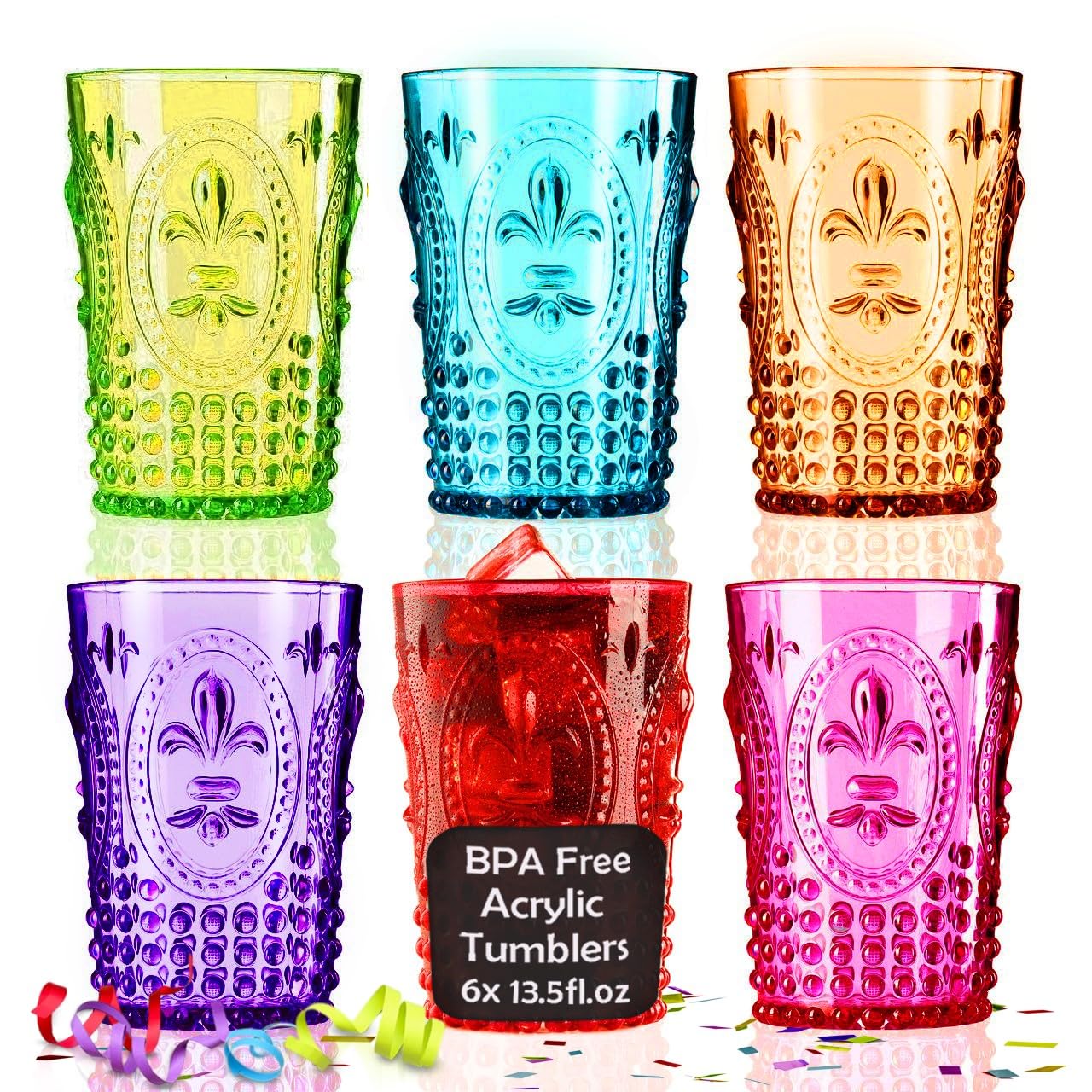 Muldale Juego de 6 vasos de plástico vintage para beber – Vasos acrílicos de colores para fiestas de 13.5 onzas – Vasos de piscina