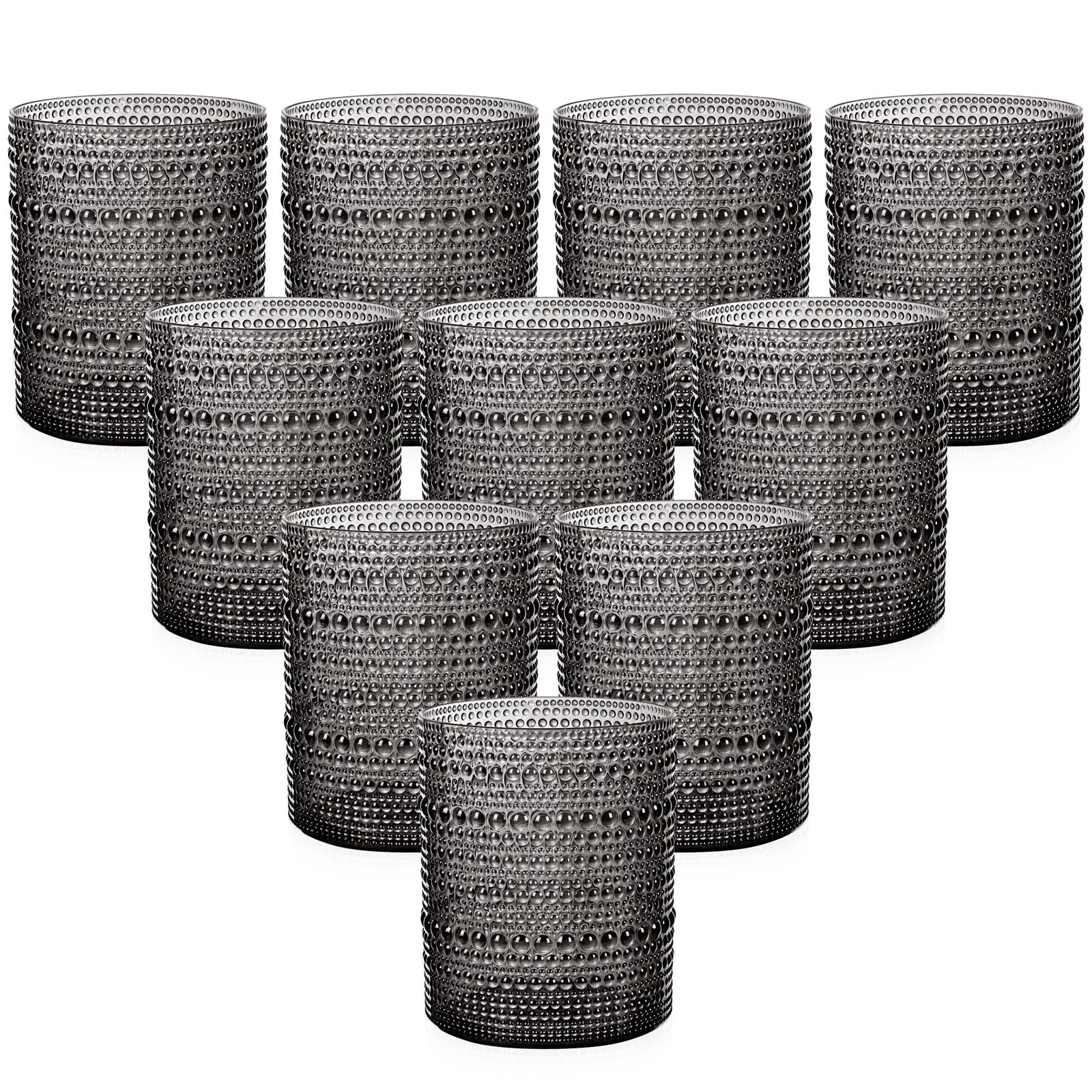 YOUBET 24 vasos de plástico para beber, vasos de 14 onzas con diseño de hobnail negro, vasos de vidrio vintage con textura con cue