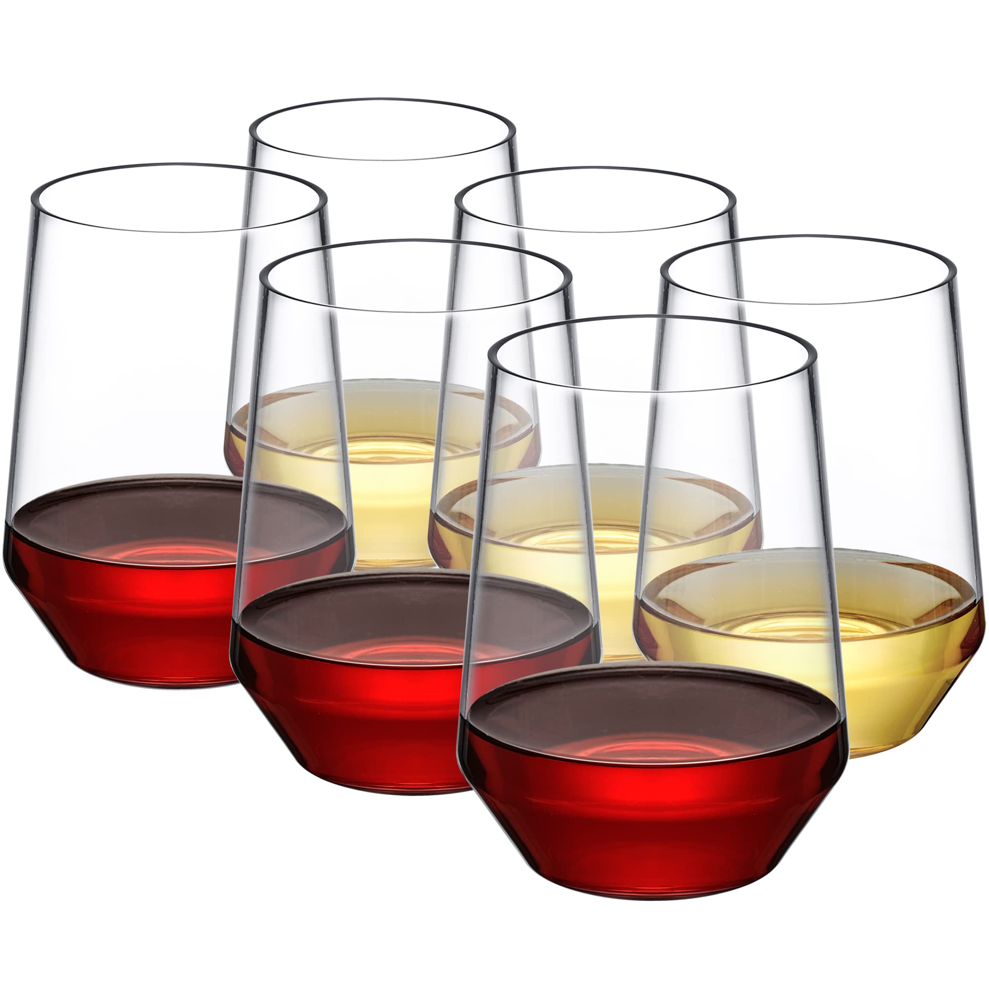 Amazing Abby – Samantha – Copas de vino de Tritan irrompibles de 20 onzas (juego de 6), vasos de vino de plástico sin tallo, reuti