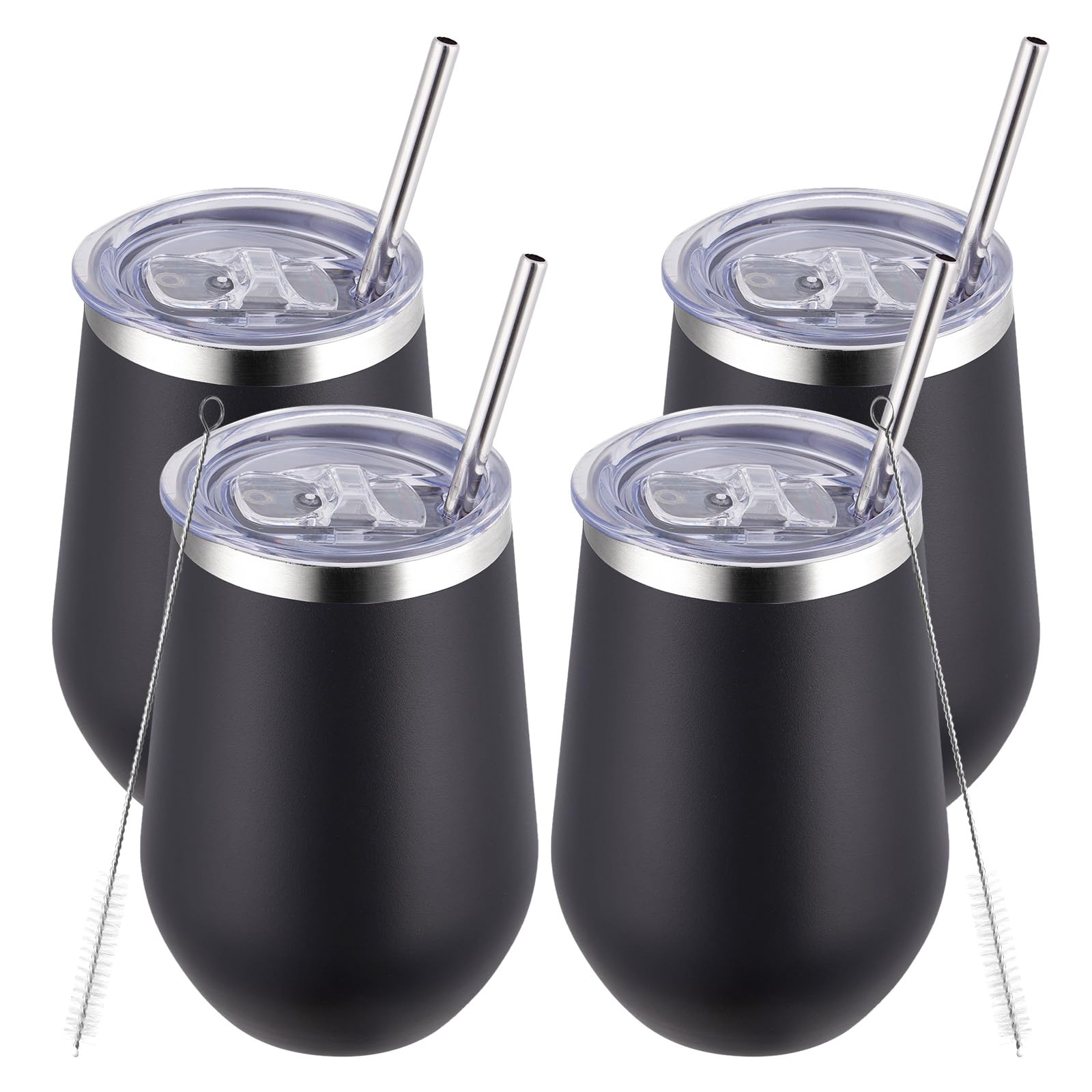 MEWAY Paquete de 4 vasos de vino de 12 onzas con tapa, de acero inoxidable al vacío de doble pared sin tallo, mantiene el frío y e