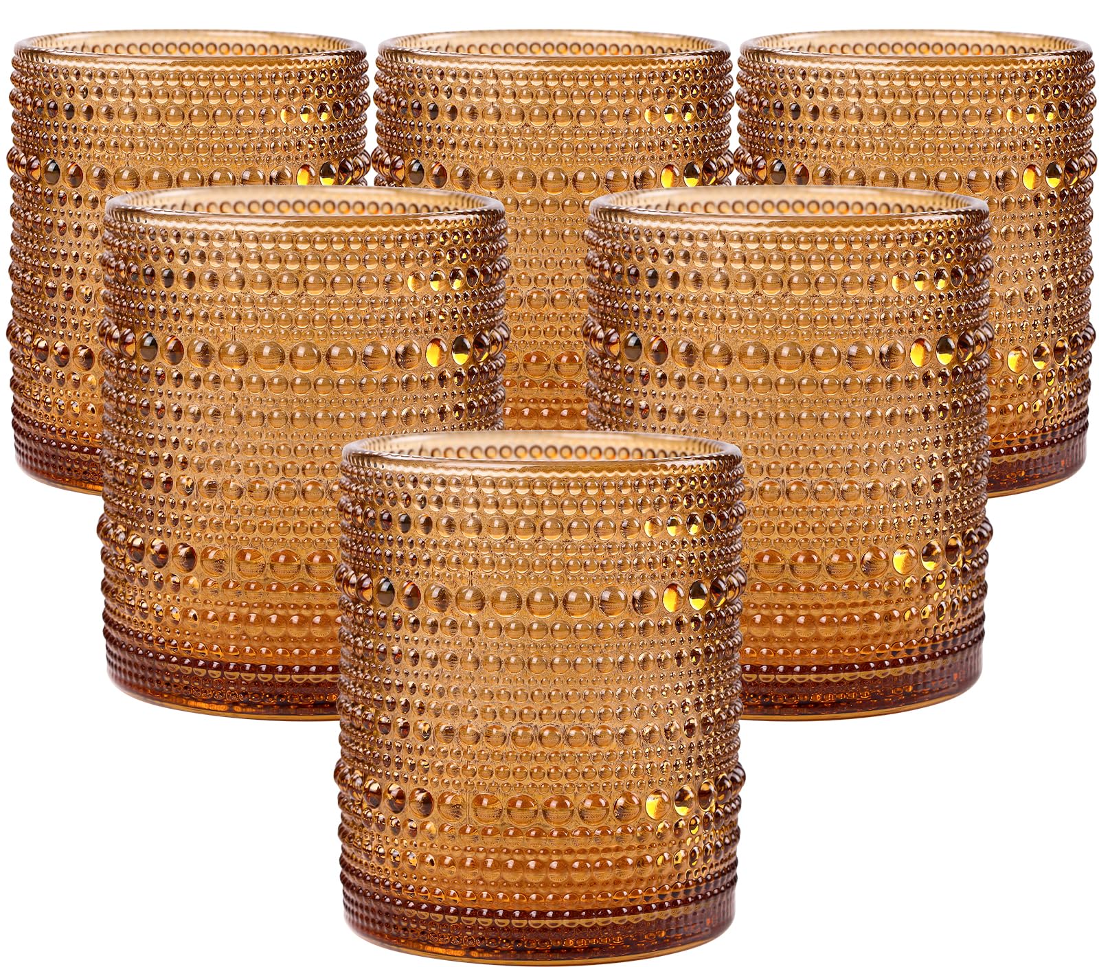 Juego de 6 vasos para beber de hobnail marrón, vasos de agua de color marrón, diseño de burbujas vintage, vasos de whisky, anticua
