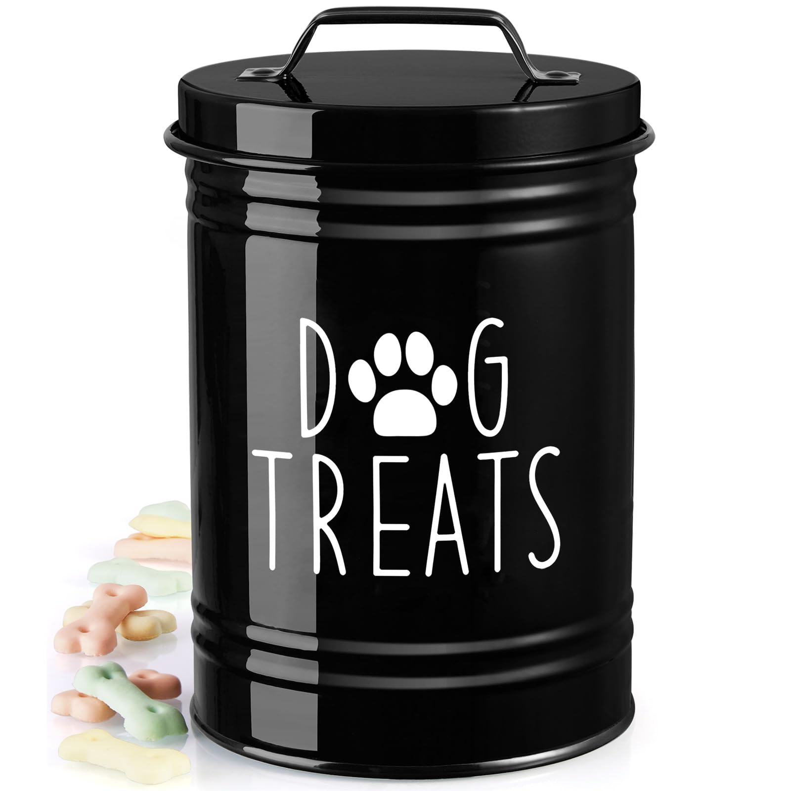 Recipiente hermético extra grande para perros, 9 pulgadas de alto x 6 pulgadas, redondo, negro, para encimera de cocina, recipient